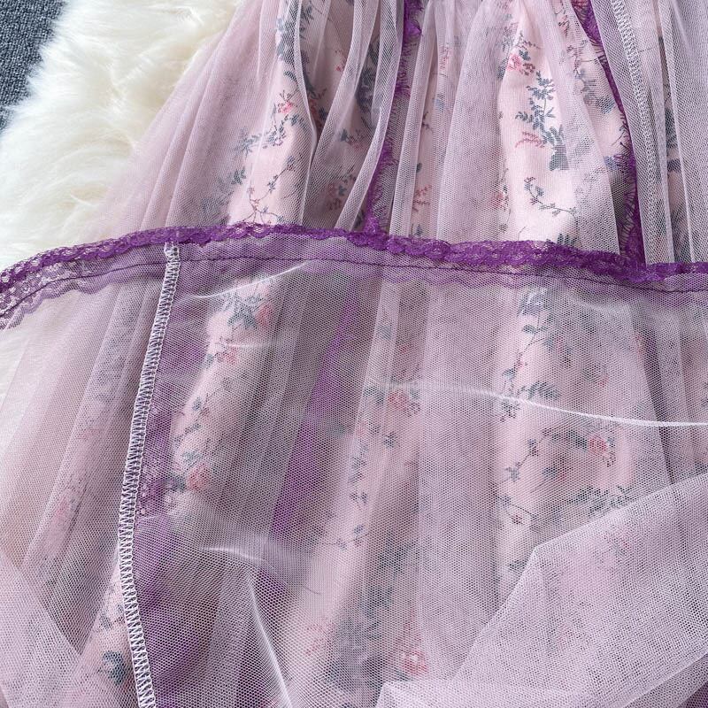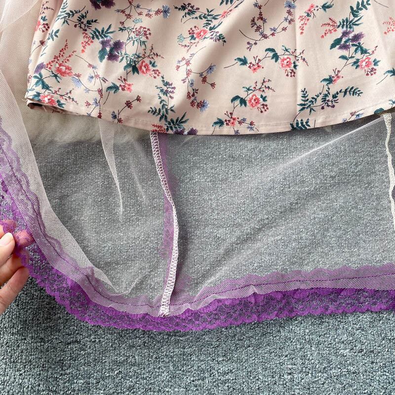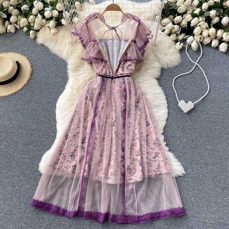 パレススタイルのドレス2021年新作サマードレスの女神ファンシンジシースルーメッシュミドル丈フローラルフェアリースカート レース 夏物 花柄 lyxaj76877769039