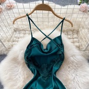 サテンレーススプリット中空サスペンダー不規則なドレス女性フレンチレトロバックレスレディースセクシーなロングドレストレンド lyxaj4744648433