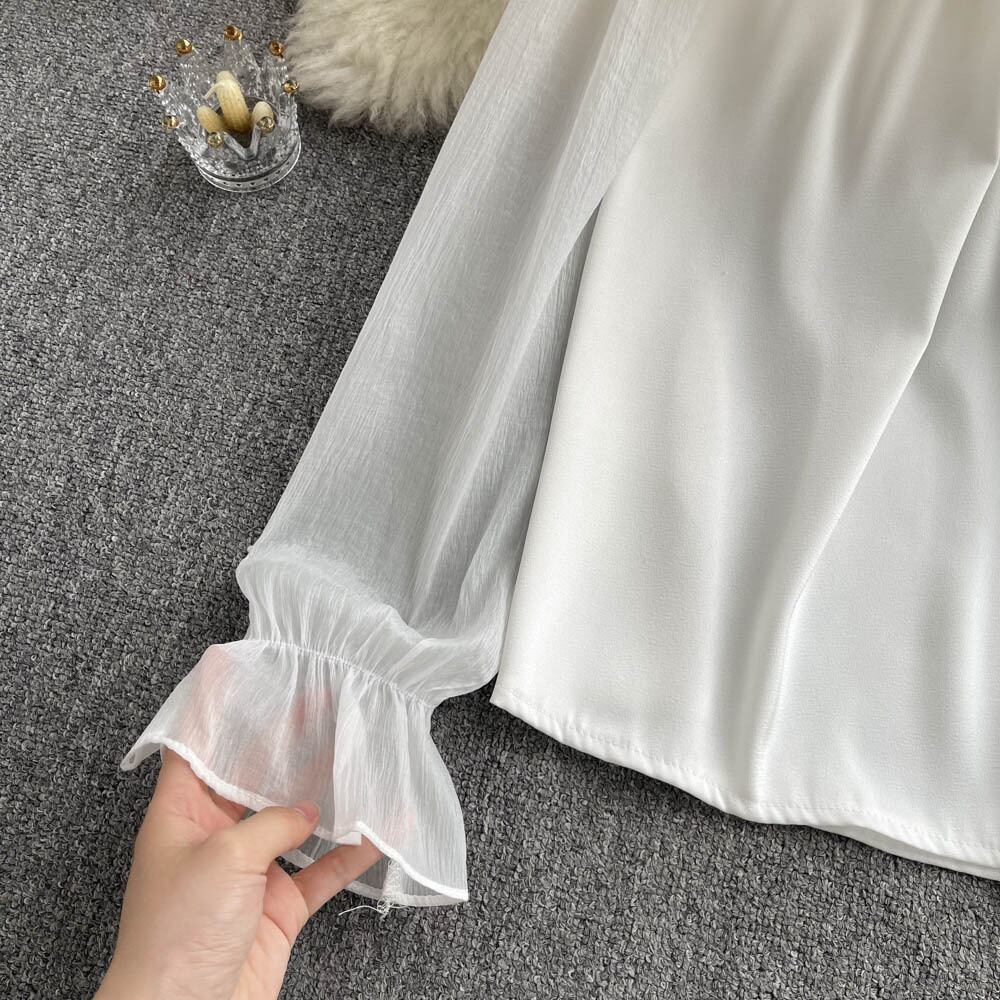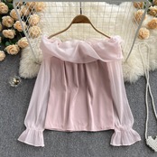 2022年春夏新作スモールイレギュラーデザインセンスワンショルダー長袖気質薄真珠フレンチトップ ロング スプリング 春物 サマー 夏物 パール lyxaj31264234888