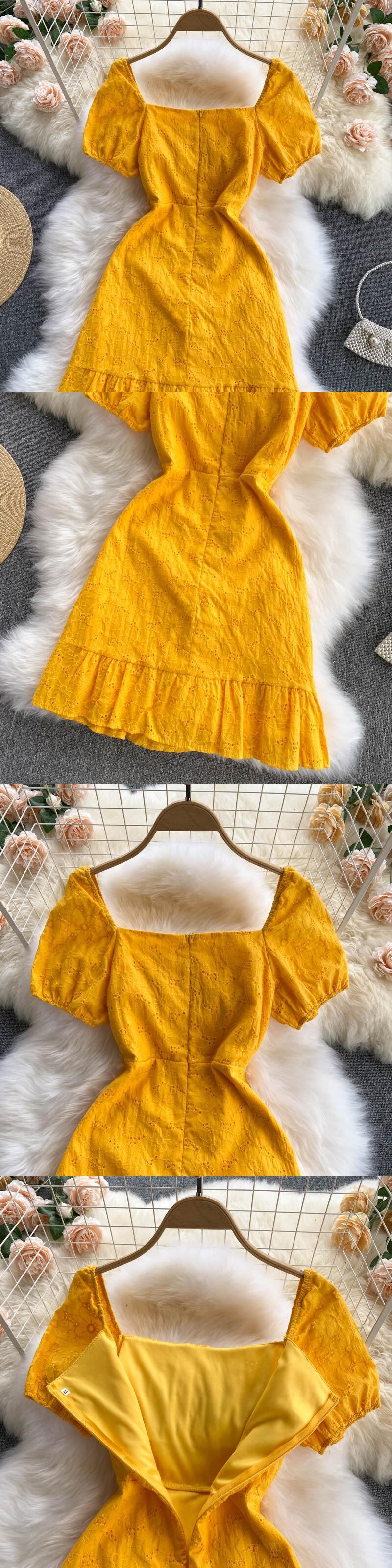 schemingcollarboneスクエアカラーフレンチパフスリーブ年齢を減らすスリムなショートフリルスカート女性の夏のホリデードレス サマー 夏物 スクウェア lyxaj16975963531