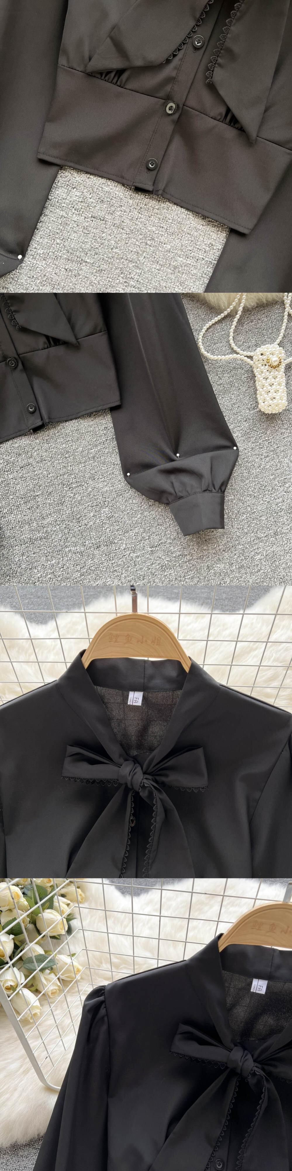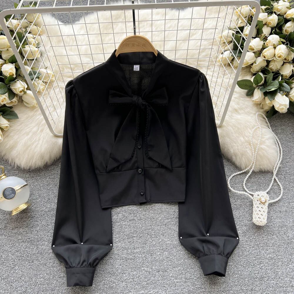 シフォンボウホワイトシャツウィメンズ2022春新作デザインセンスニッチライトおなじみプロOL気質シャツタイド リボン スプリング 春物 lyxaj19714463482