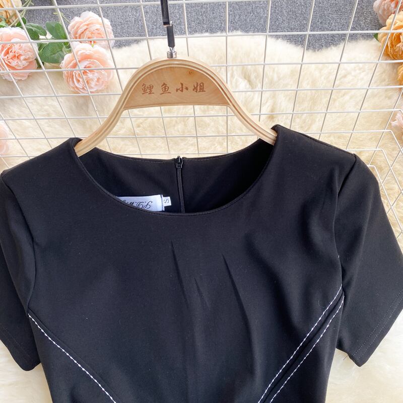 軽くて成熟した婦人服の気質ラウンドネックデザインセンスニッチオープンラインスリムフリルドレス2021新しいサマードレス 夏物 Oネック lyxaj15056619381
