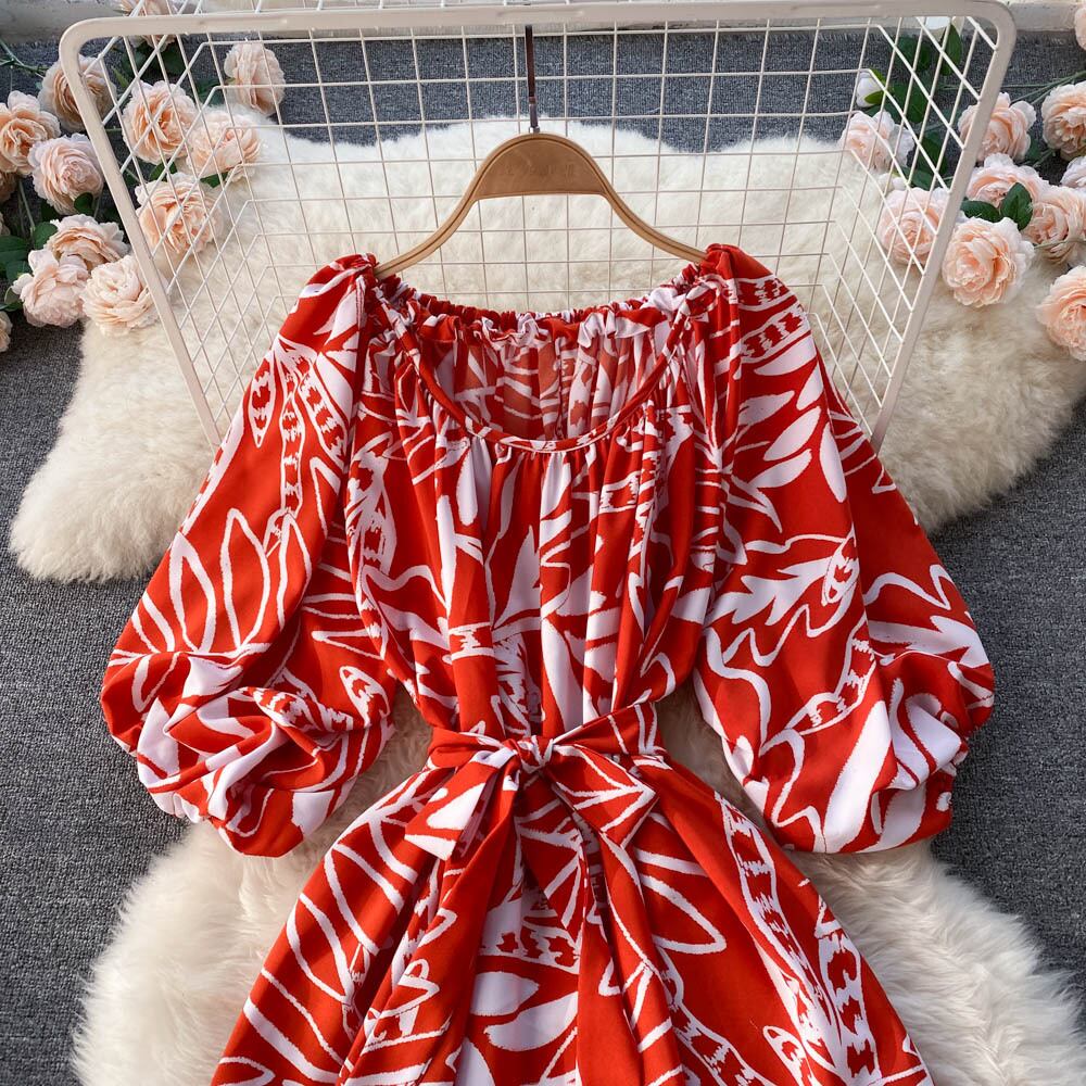 ハイウエストの薄い花柄半袖シフォンサスペンダードレス女性の2022年夏の海辺のホリデービーチスカートロングスカート サマー 夏物 lyxaj75072726854
