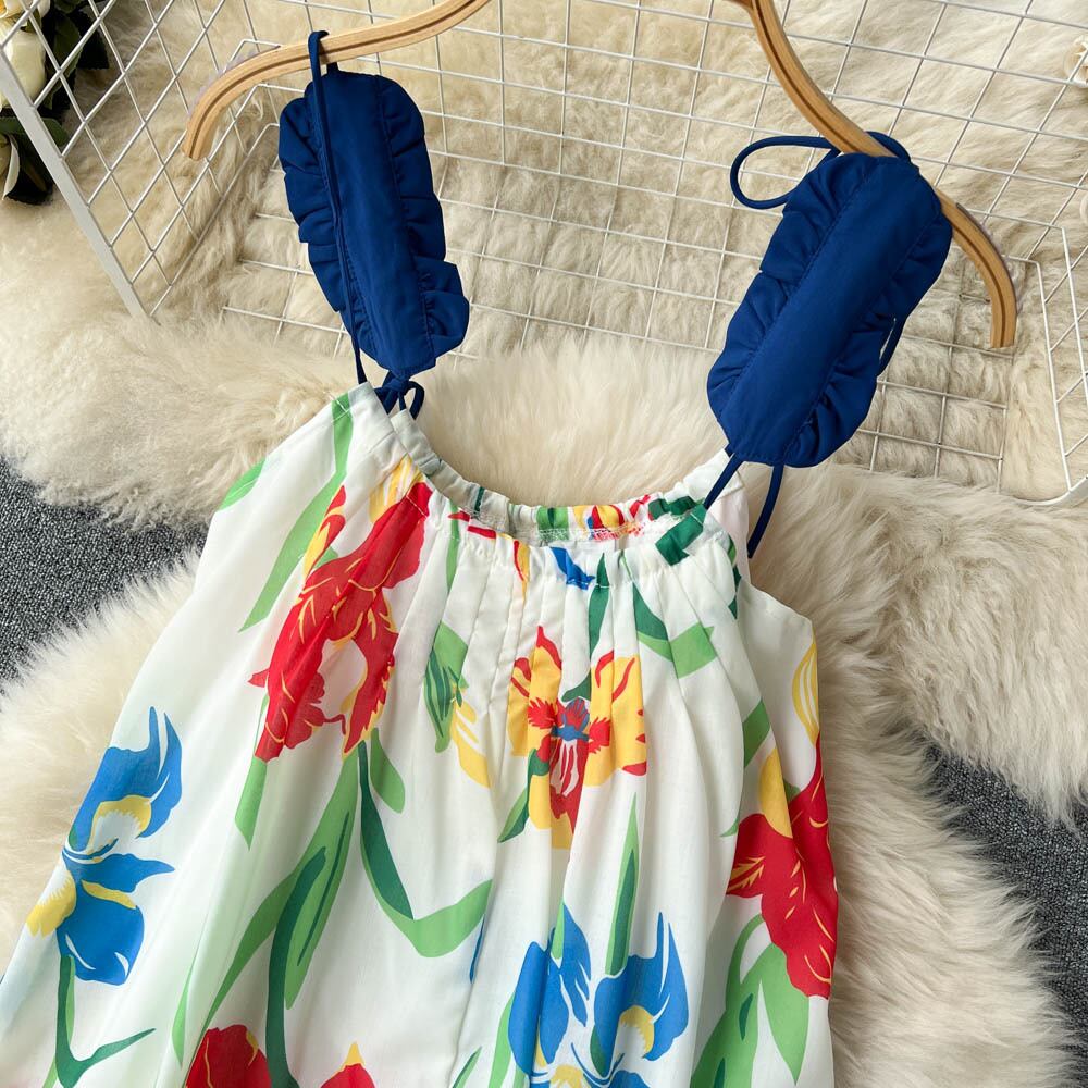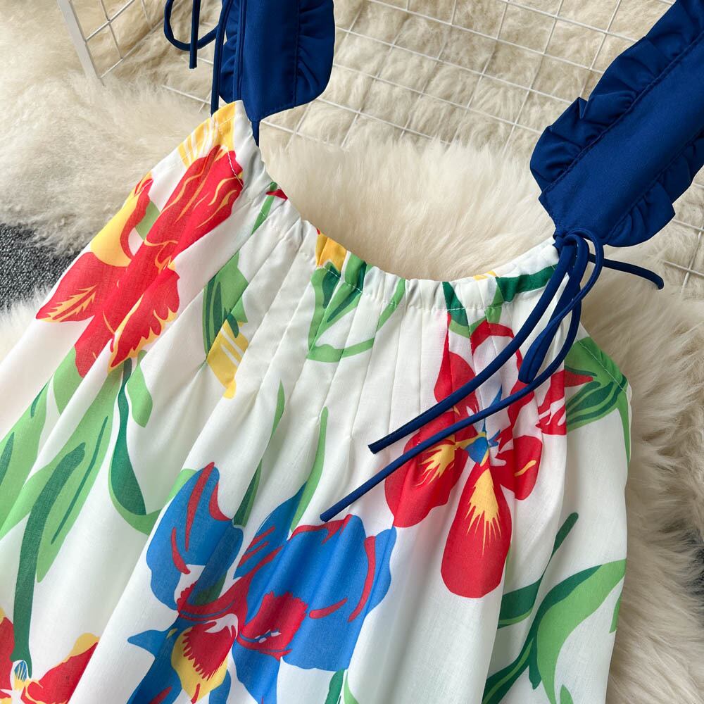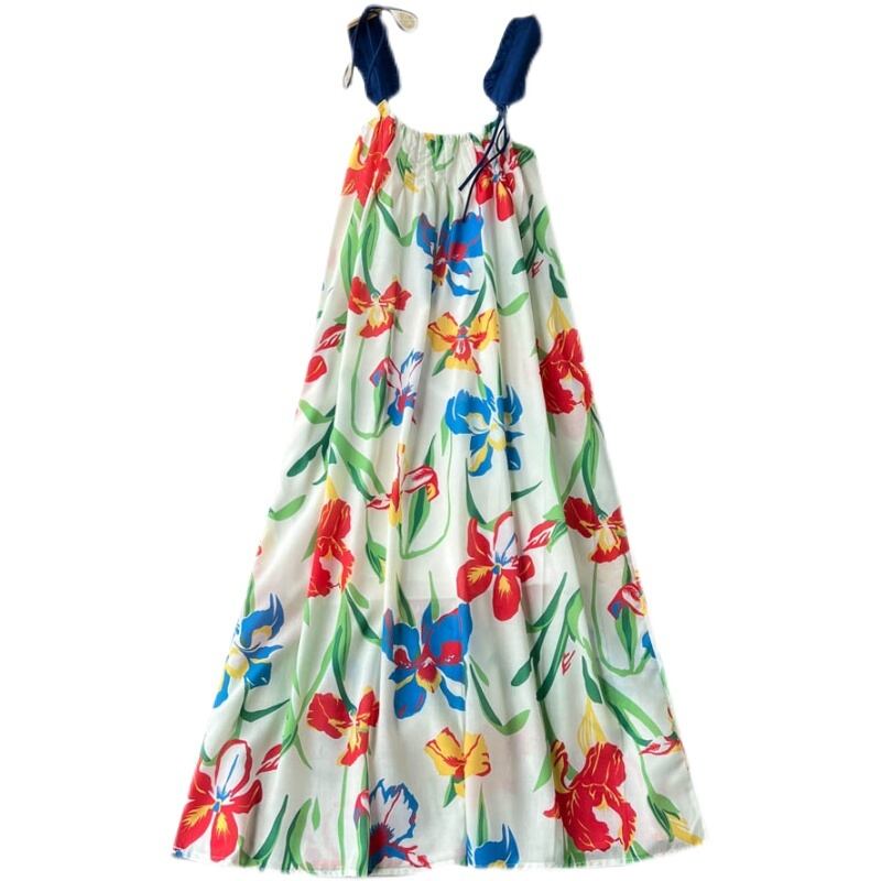 シーサイドホリデースタイルビーチスカートレディースサマープリントサスペンダードレスレディースプリーツオーバーザニースリムロングスカート 夏物 lyxaj61521951353