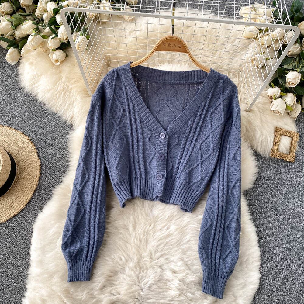香港スタイルのレトロツイストルーズVネックショートセーターキャミソール lyxaj38702238740