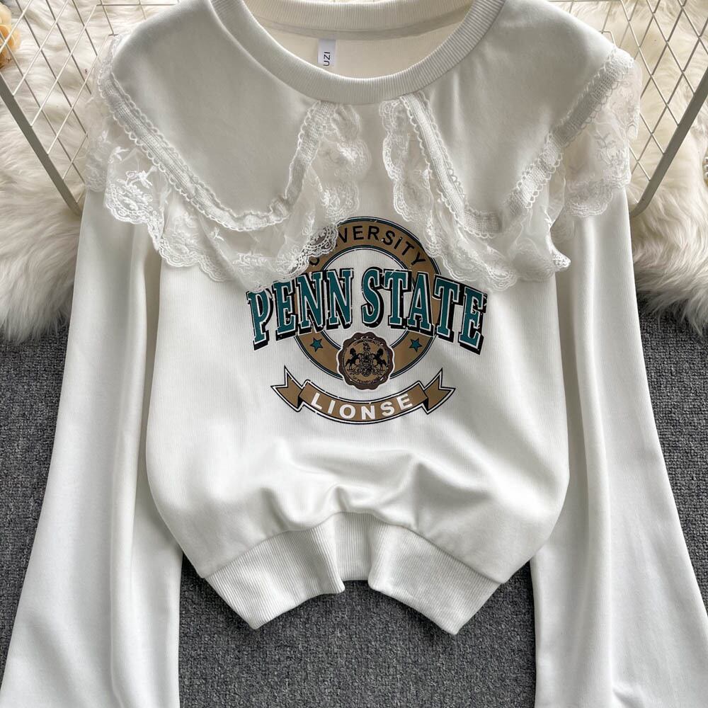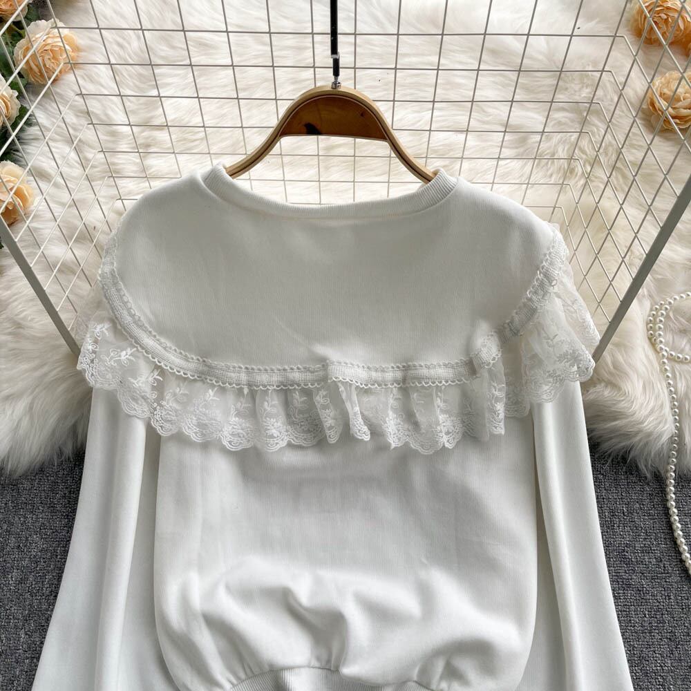 シックな香港スタイルのセーターの女性のデザインセンスのニッチなレースのステッチ人形の襟の年齢を減らすルーズなオールマッチの長袖トップトレンディ ロング lyxaj68469737079