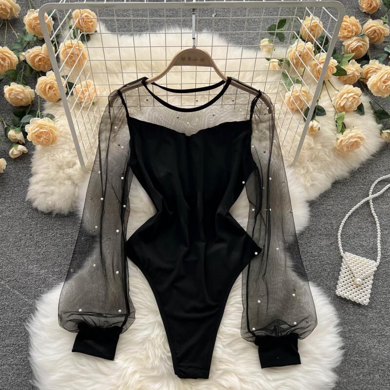 春夏ヨーロッパとアメリカのインデザインセンスメッシュステッチニットトップレディースジャンプスーツハイフォークリークウエストセクシーボトミングシャツ スプリング 春物 サマー 夏物 ヨーロピアン lyxaj78148542198