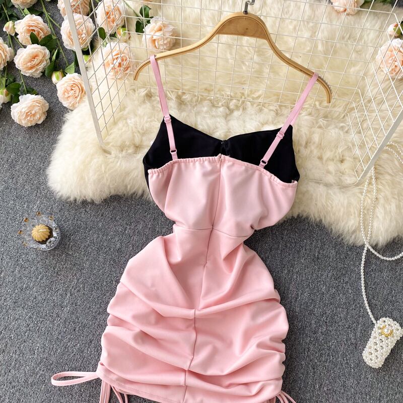 2022年夏の新しいホットガールサスペンダーセクシーなローカットレースステッチコントラストカラープリーツヒップ純粋な欲望スタイルのドレス サマー 夏物 ピュア lyxaj21298346364