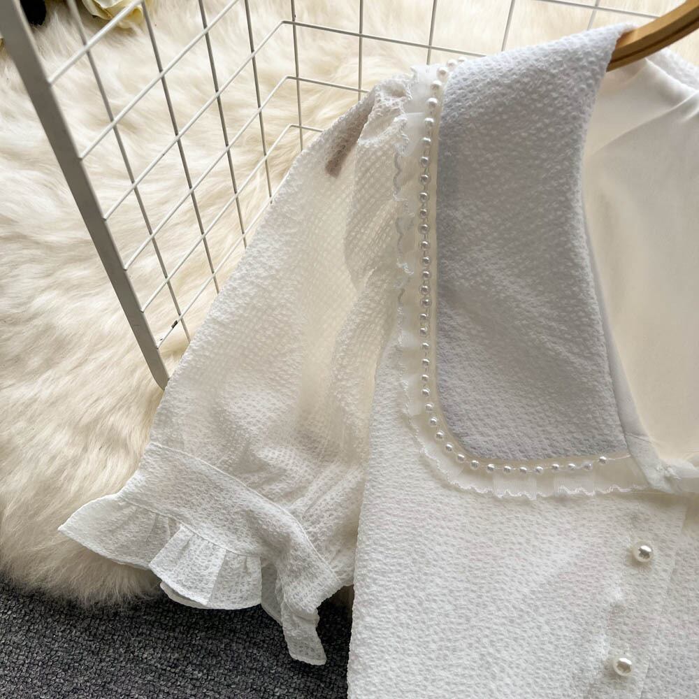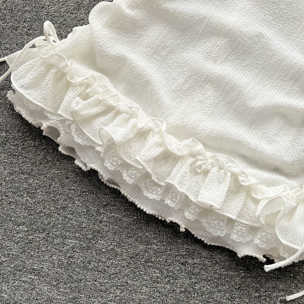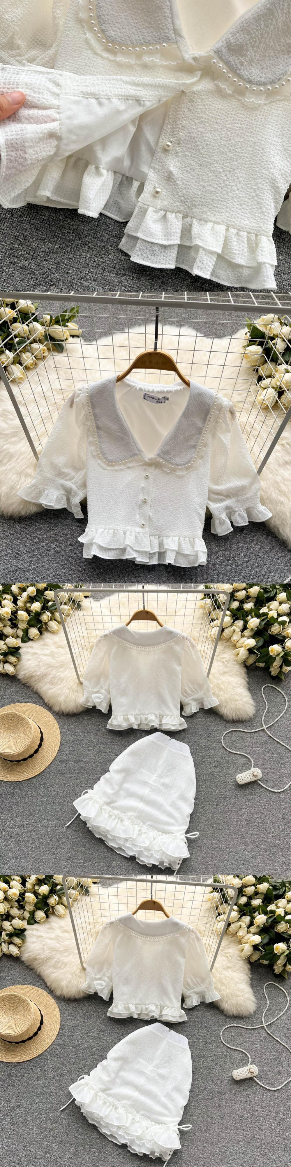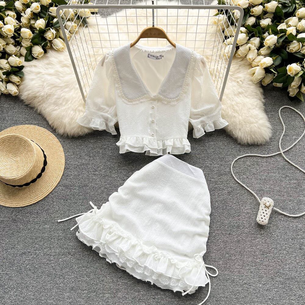 香港スタイルのレトロな女の子のスーツ重工業のデザインセンス純粋な欲望菌エッジシャツ巾着ハイウエストスカートツーピースタイド ハイウェスト ピュア lyxaj99694553188
