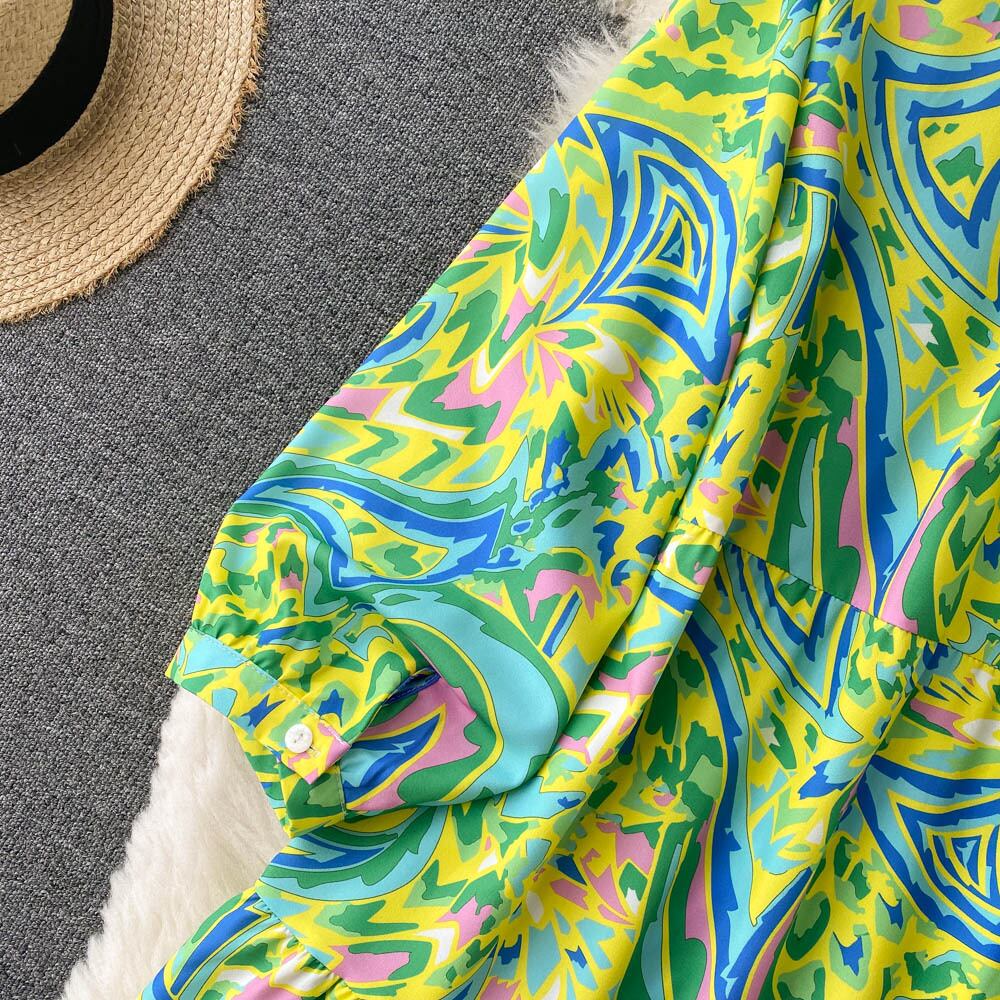 フランスのレトロな長袖シャツドレスルーズカバーベリーインク印刷高貴でエレガントな気質大スイングロングスカート lyxaj84613123143