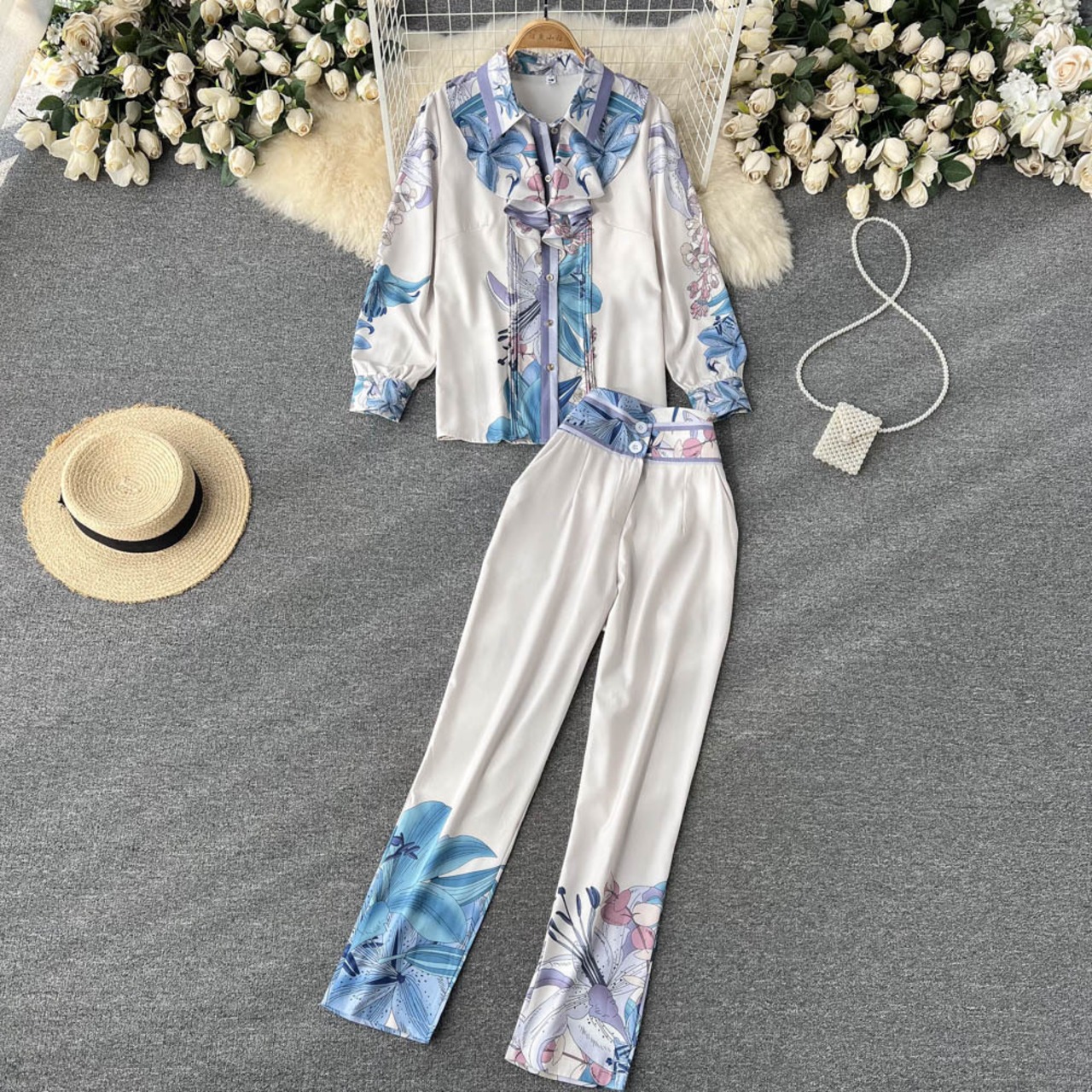 気質とエレガントな女神ファンプリントシャツカジュアルパンツ女性の2022年春の新しい光おなじみのオールマッチファッションスーツ スプリング 春物 lyxaj13940359114