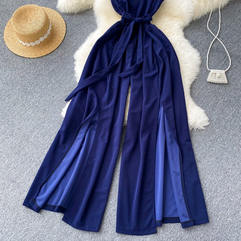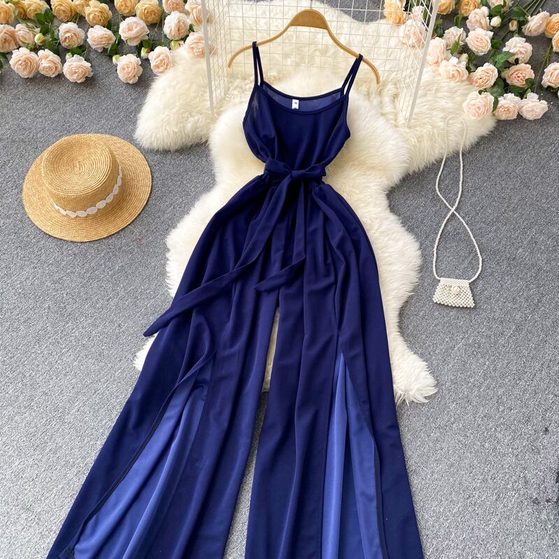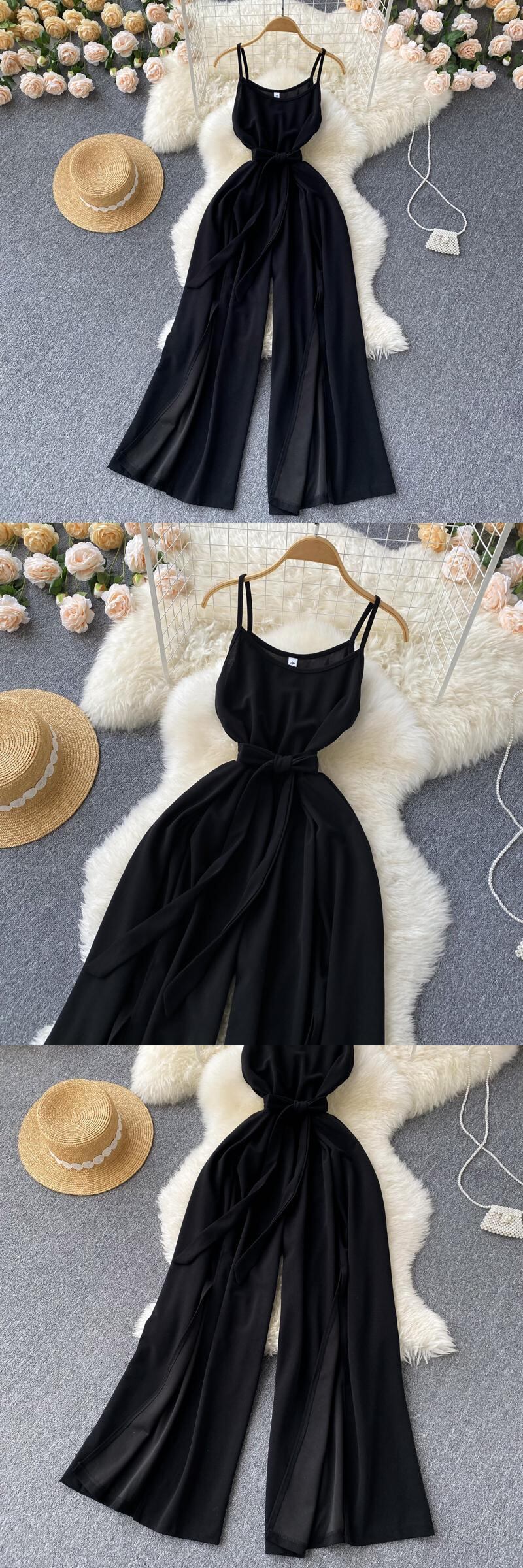 version of sexy square-neck suspender jumpsuit summer new fashion straps waist waist show thin temperament split wide-leg pants サマー 夏物 スクウェア lyxaj36633435432