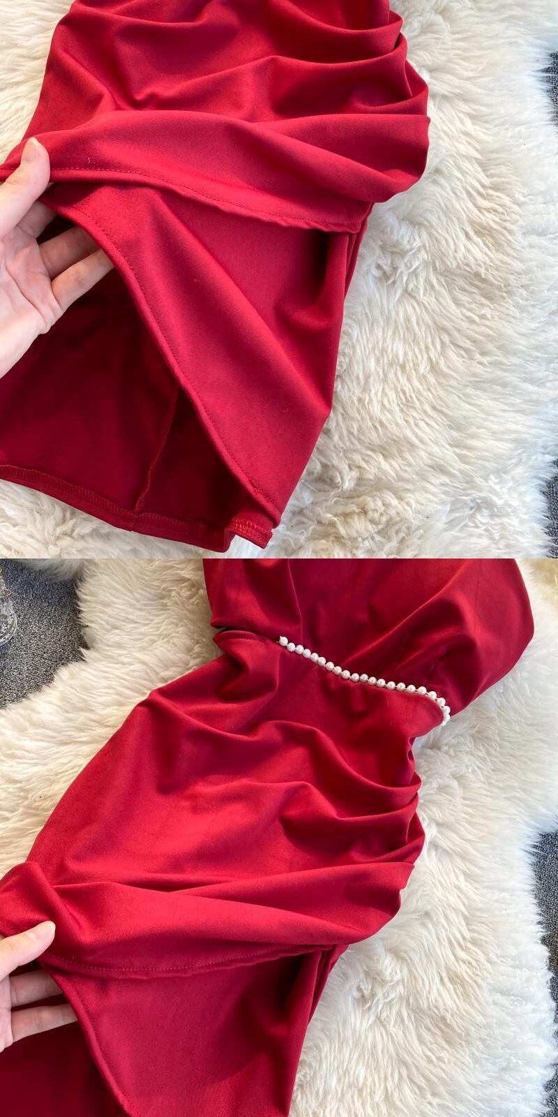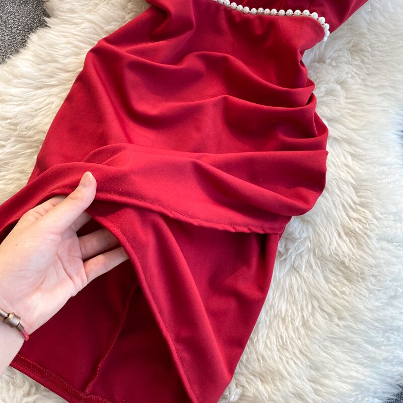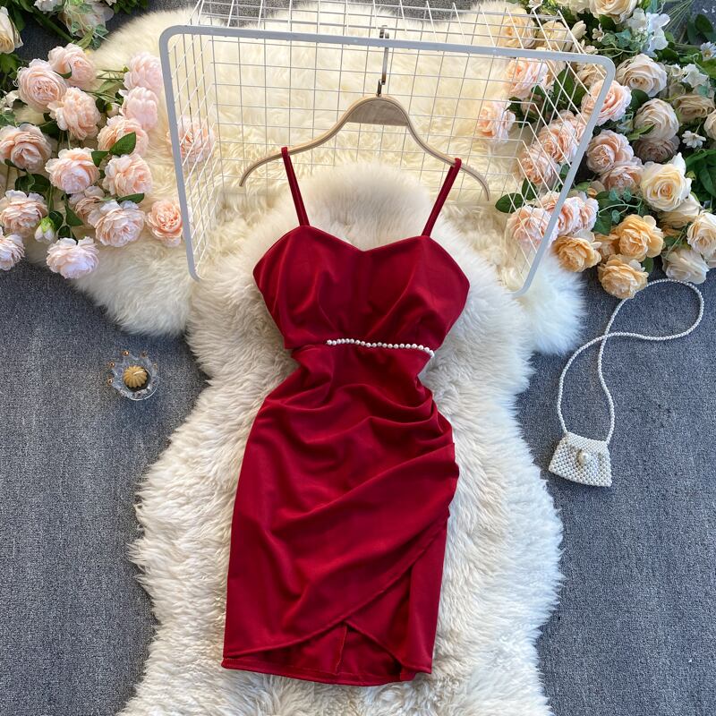 セレブの小さなドレススカートプリーツビーズスリムショートパッケージヒップスカートセクシーな背中の開いたサスペンダードレス lyxaj43894548294