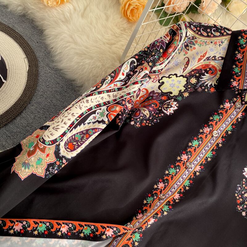 ボヘミアンレトロパレススタイルトップレディースラペル長袖ルーズ&シンオールマッチバケーショントラベルシャツレディースタイド ロング レース lyxaj32348365880