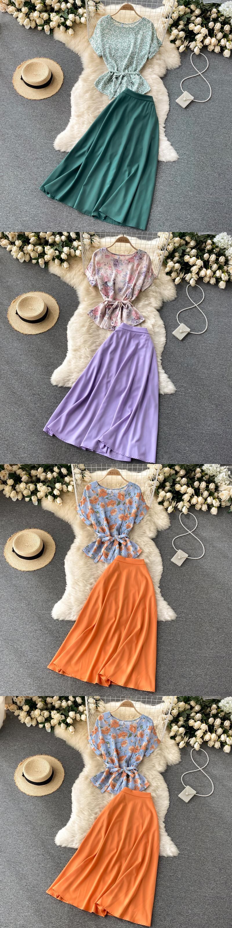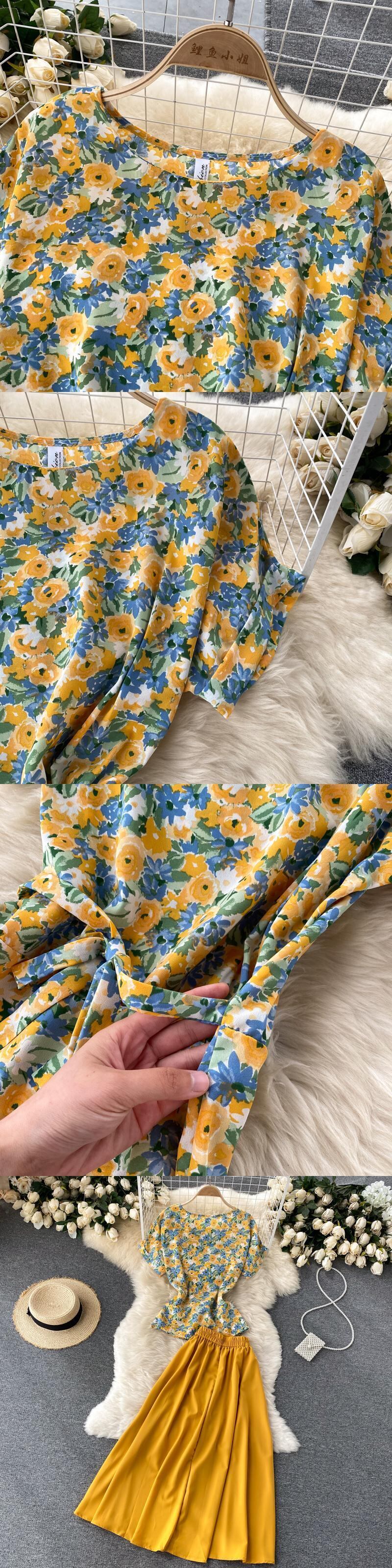 軽く調理された香港スタイルのスーツ女性の夏の短い花柄のデザイントップハイウエストプリーツスカートツーピーススーツスカート ハイウェスト ショート サマー 夏物 lyxaj71356808673