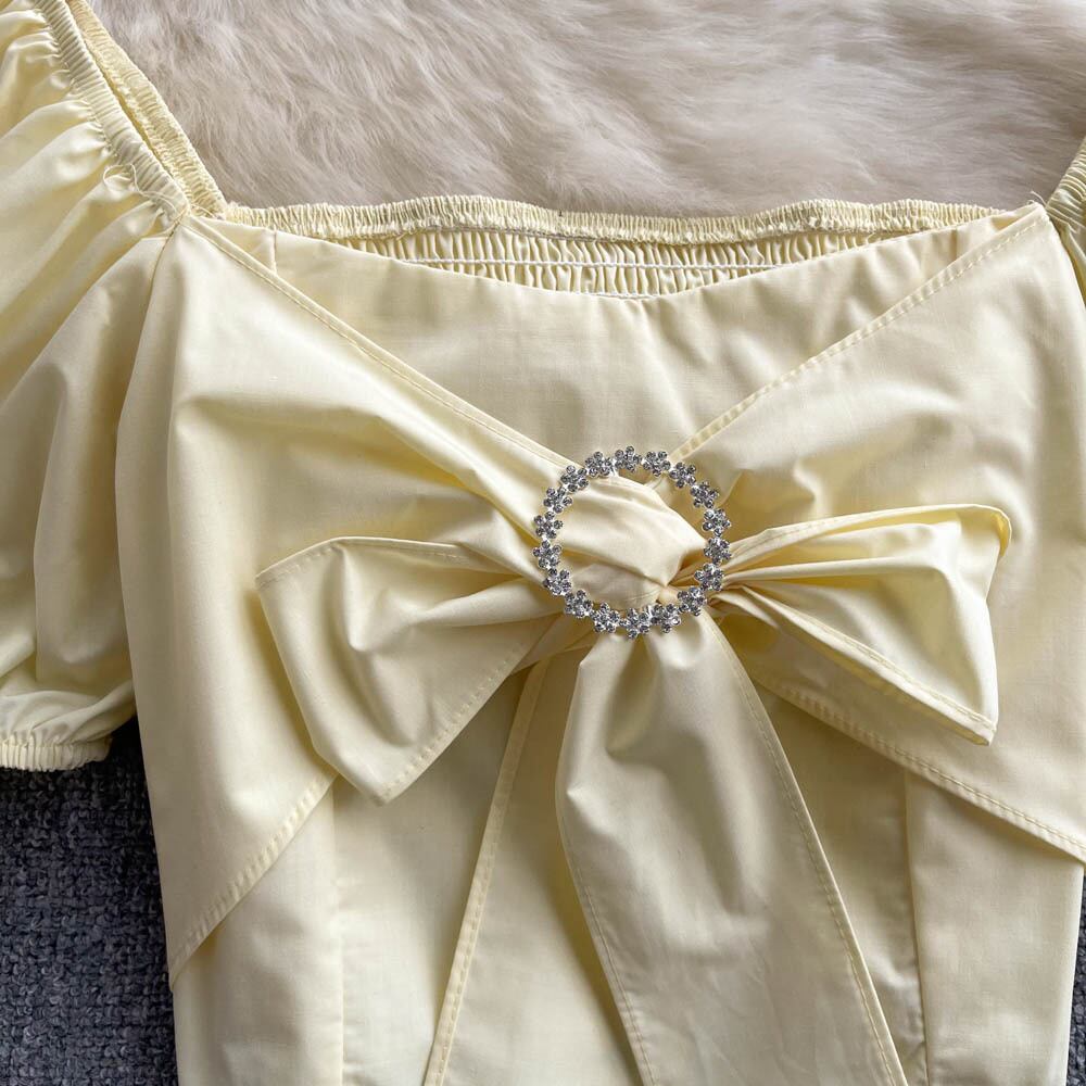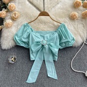 2022年夏の新しいファッションデザインセンスフレンチニッチレトロボウタイショートネーブル半袖トップ リボン サマー 夏物 lyxaj93558701742