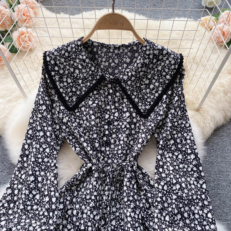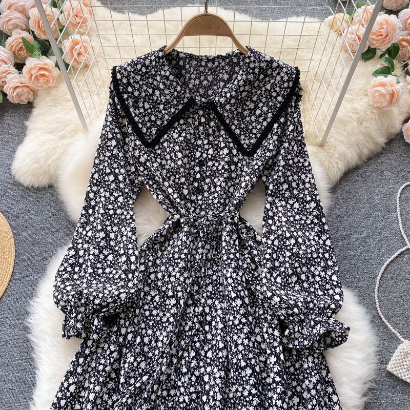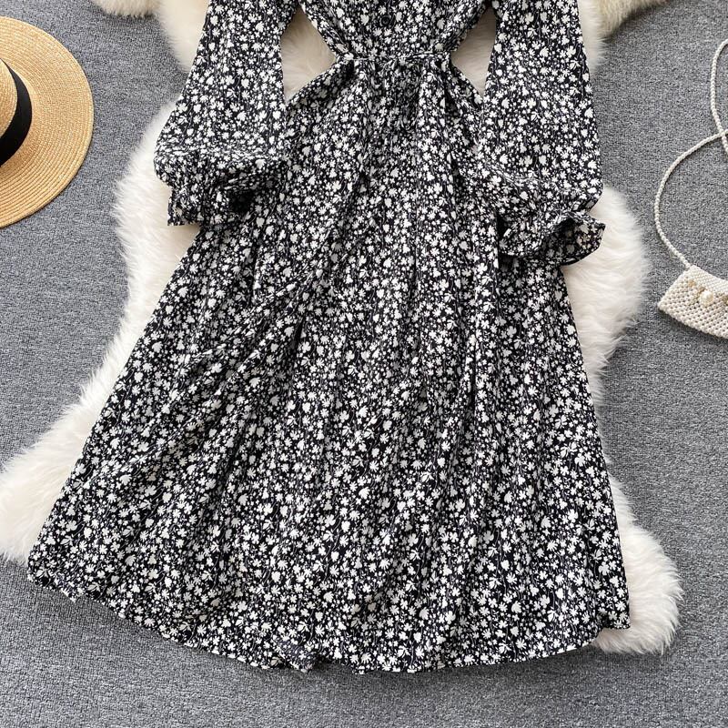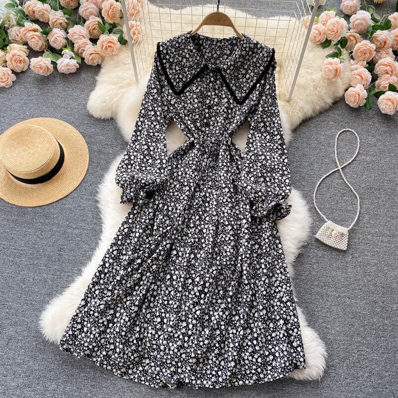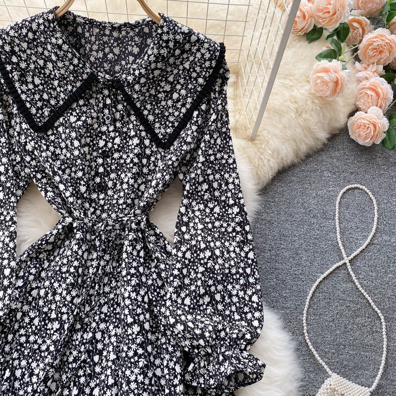 ヘップバーンスタイル秋の新デザインセンスドレス不規則なミドル丈気質フェアリーシフォンフローラル初恋ドレス オータム 秋物 花柄 lyxaj88009276760