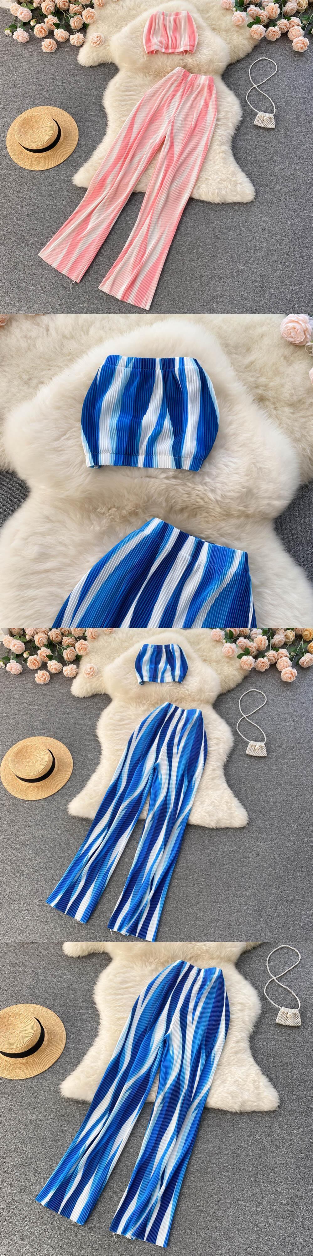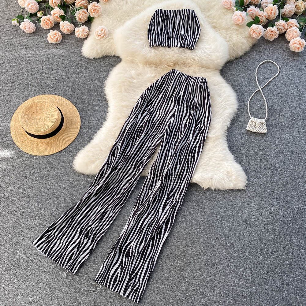 ヨーロッパとアメリカのスーツの女性のデザインセンスニッチショートチューブトップトップハイウエストカジュアルストレートワイドレッグパンツツーピーストレンディ ハイウェスト ワイドパンツ ヨーロピアン lyxaj49461422719