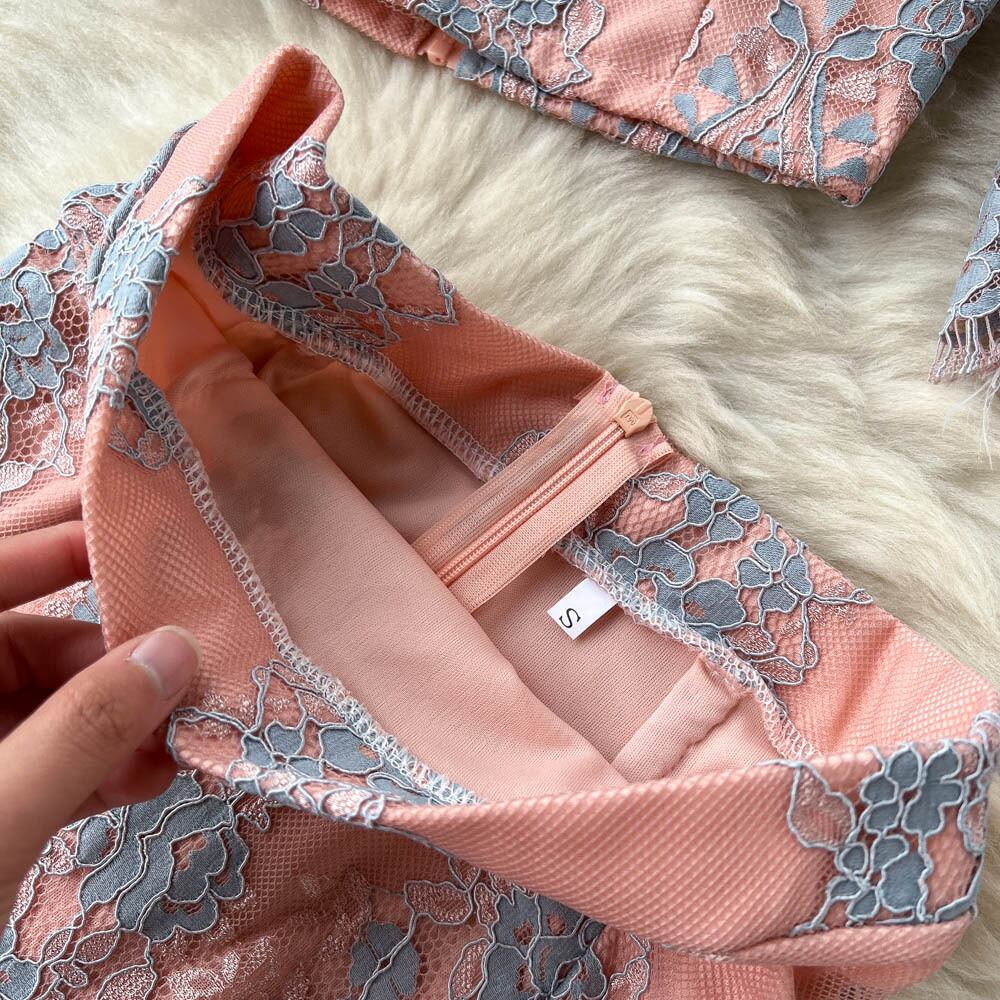 ホリデースタイルのレース刺繡ライトマチュアスーツレディースウエスタンスタイルショートワンワードカラートップハイウエストスカートツーピーストレンディ ハイウェスト 刺繍 lyxaj90197423879