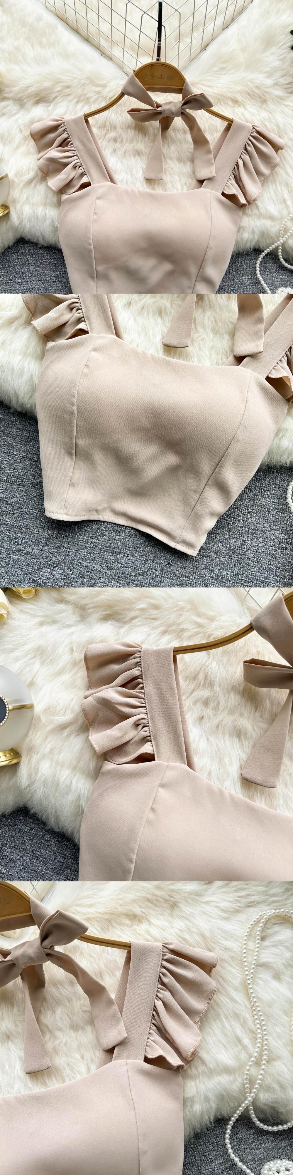 Girl simple solid color bow hanging neck tie version all-match thin belt chest pad short small camisole trendy ショート リボン ハーネス ベルト ソリッドカラー lyxaj6894245636