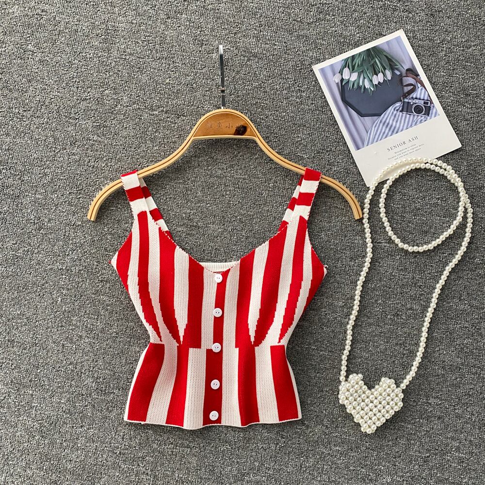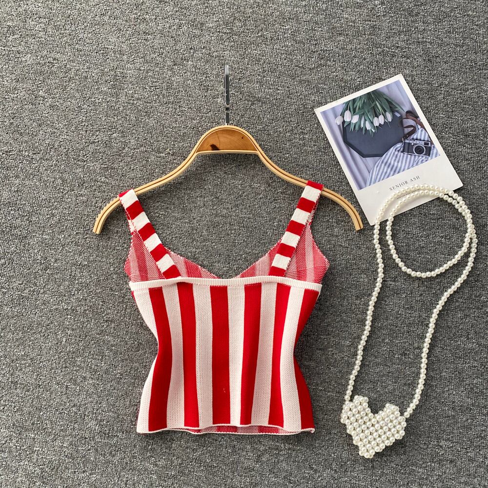 ニッチな外見のセンスのあるヨーロッパとアメリカのインストライプサスペンダーはベストを着用し、女性は外国のファッショナブルなショートニットトップスを着用します ヨーロピアン lyxaj59863584980