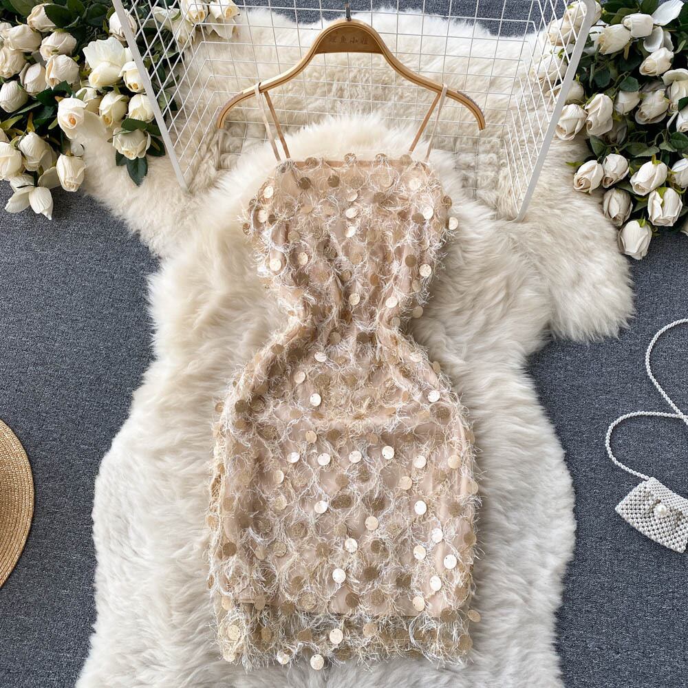 2022年春の新しいノースリーブストラップレススリムバッグヒップスパンコール揚げストリートスカートナイトクラブセクシーなサスペンダードレス スプリング 春物 lyxaj86594059786