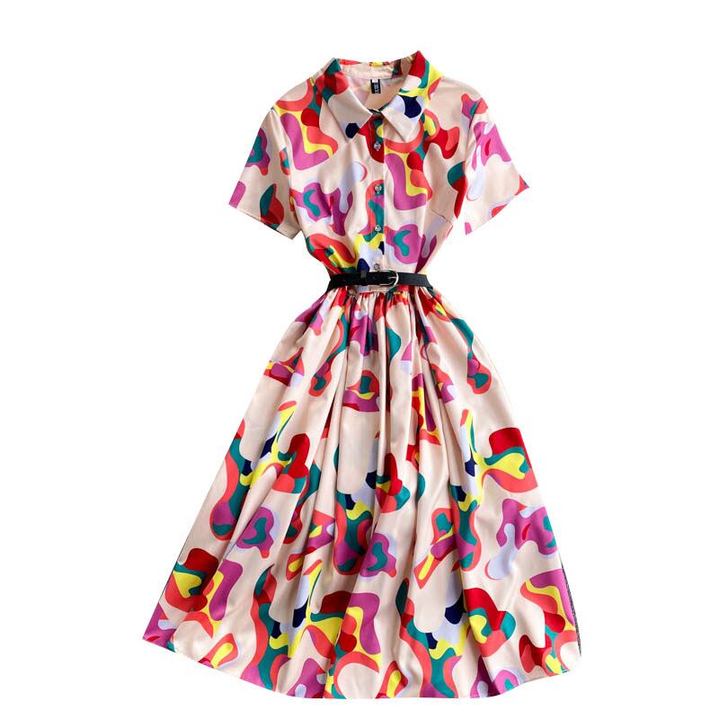 ヨーロッパのステーションレディースウェア2021新しいトレンディなデザインセンスニッチパレットカラーマッチングハイエンド気質レディースドレス女性 ヨーロピアン lyxaj78407702589