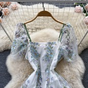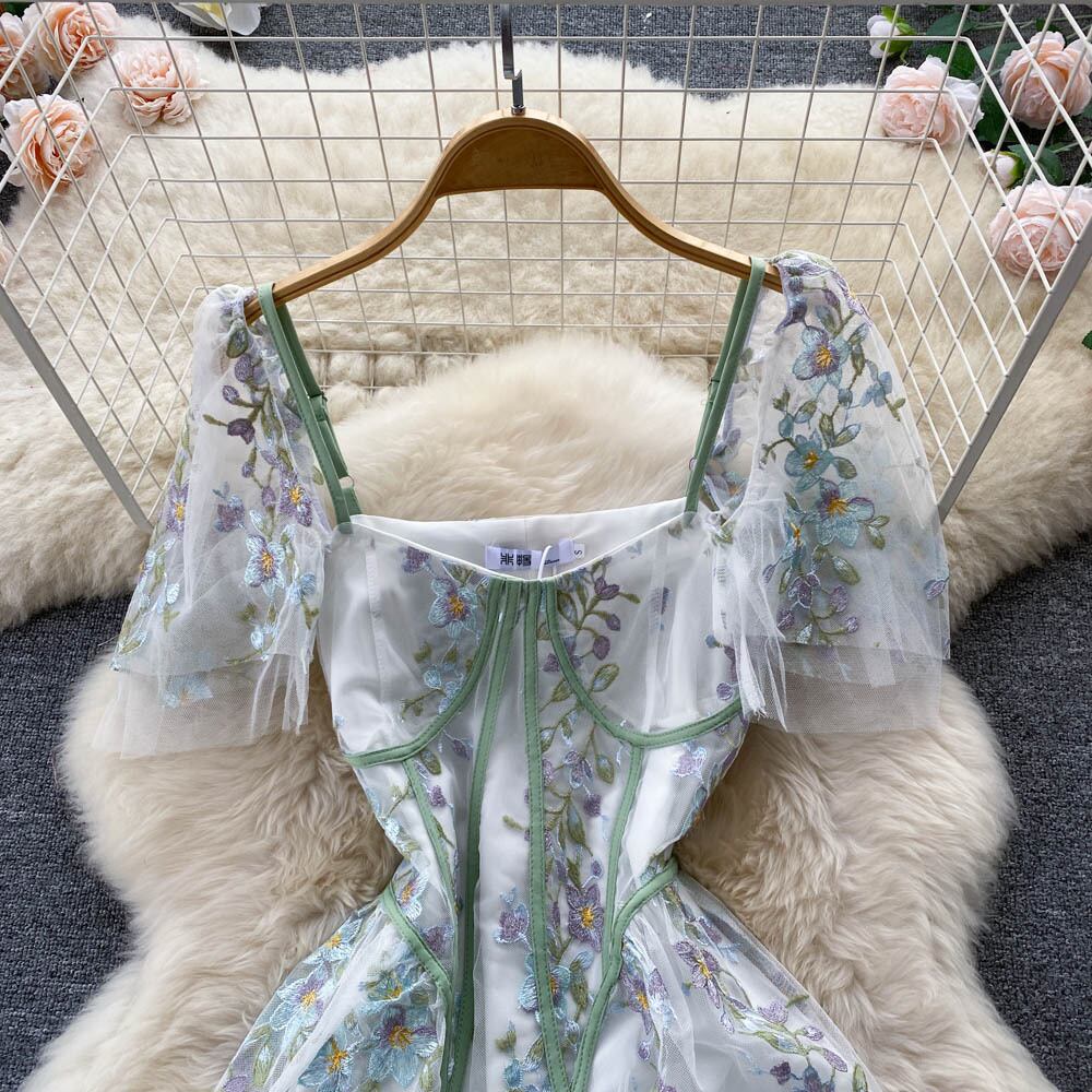 重工業気質レディースレース刺繍フローラルサスペンダードレスレディースウエストミドル丈スクエアカラーウエスタンスタイルロングスカート レッド 花柄 スクウェア lyxaj81413406409