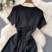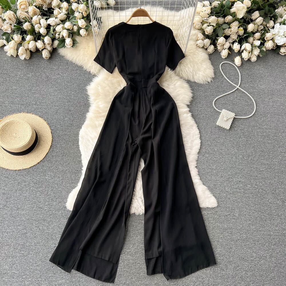 セレブOL韓国版ファッショナブルな気質Vネック半袖ジャンプスーツウエストは細くてドレープワイドレッグパンツジャンプスーツ女性 lyxaj76019821921