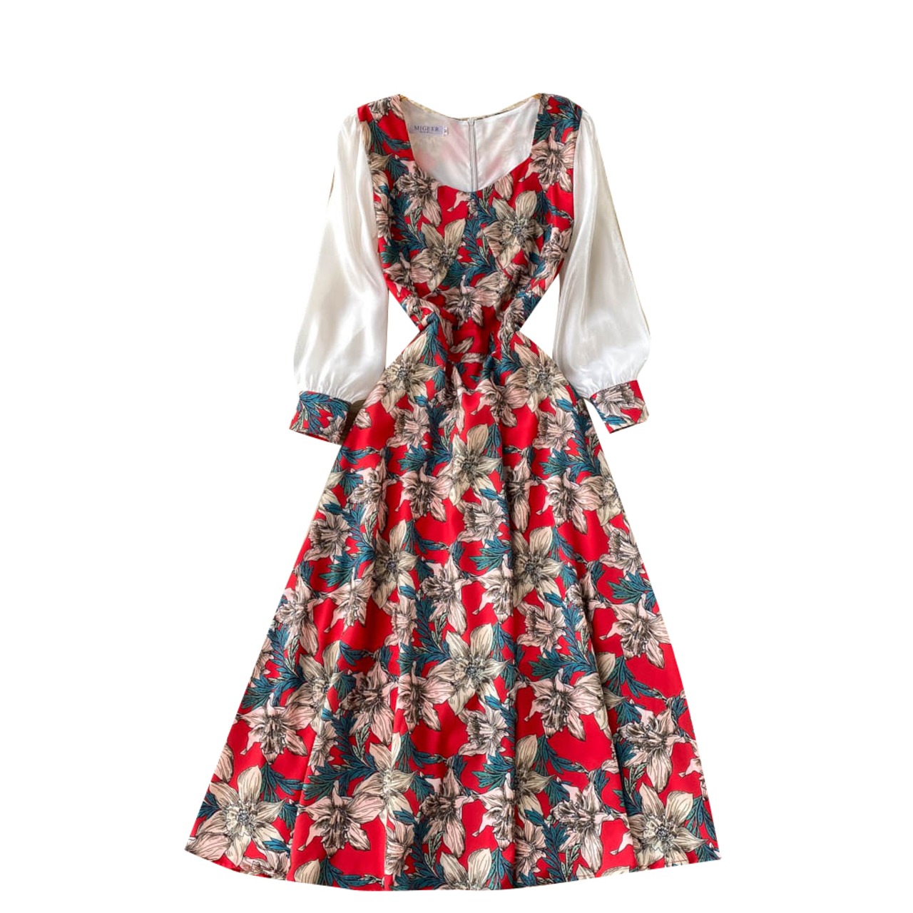 ドレス2021ニューファッションウエスタンスタイルレディースフレンチレトロラージスイングa-wordシフォンラージフラワー長袖スカート ロング フラワーデザイン lyxaj41250360947