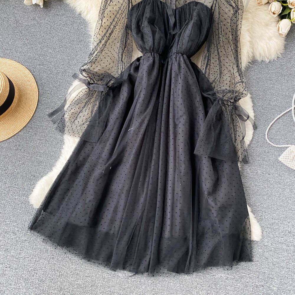 レディーススタイルのボトミングドレス女性の春の新しいフレンチシックな気質メッシュa-wordプリンセスふわふわショートスカート スプリング 春物 lyxaj3244792070
