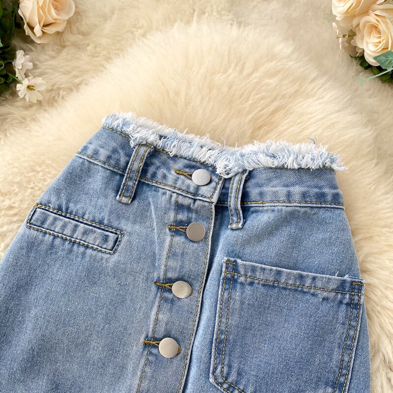 レトロな生のエッジ、ハイウエスト、スリムな韓国スタイルのウェア ハイウェスト lyxaj5024639863