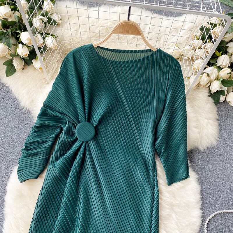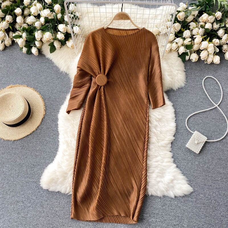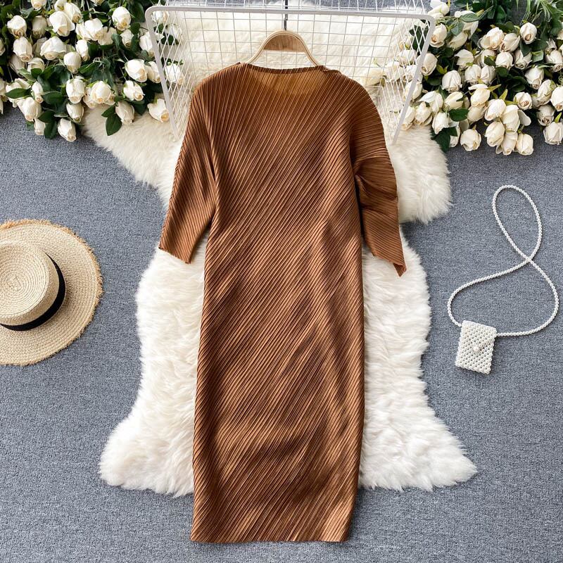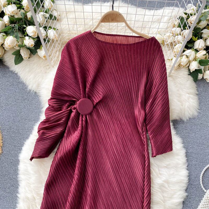 レディスタイルドレス2021新春ドレスレトロ重工業プリーツたくらみプリーツスリムミドル丈ドレススカート スプリング 春物 lyxaj84357747190