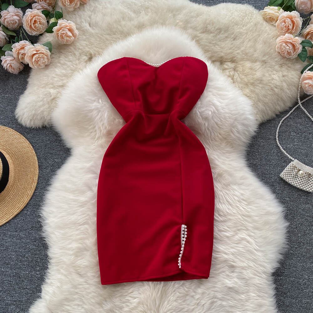 ハイエンド気質レディースワンワードネックストラップレスドレス女性スモールライトおなじみドレスショートヒップパッケージイブニングドレス lyxaj39917347244