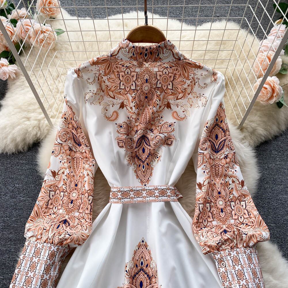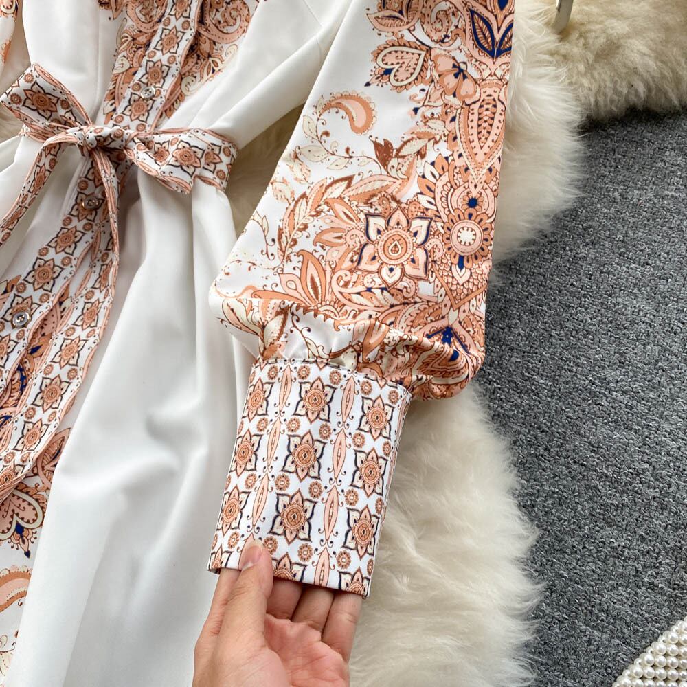 パレススタイルのドレスハイエンド女性気質ポロカラーレトロプリントレースアップスリムスリムドレスロングスカート lyxaj33453484478