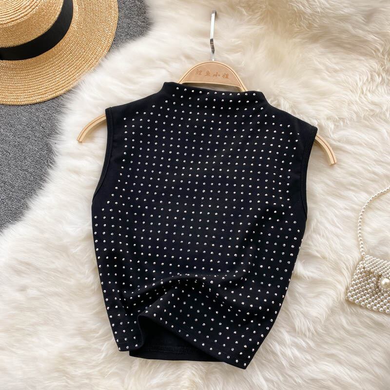 軽いヨーロッパとアメリカのトップス、女性のデザインセンス、ニッチ、ホット、ドリル、スリム、ショート、オールマッチ、ノースリーブのベスト、セクシーなへそシャツ、トレンディ ヨーロピアン lyxaj58502656094