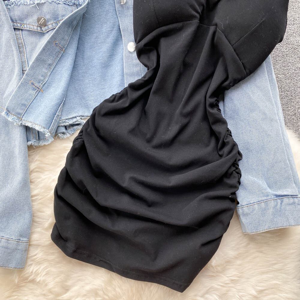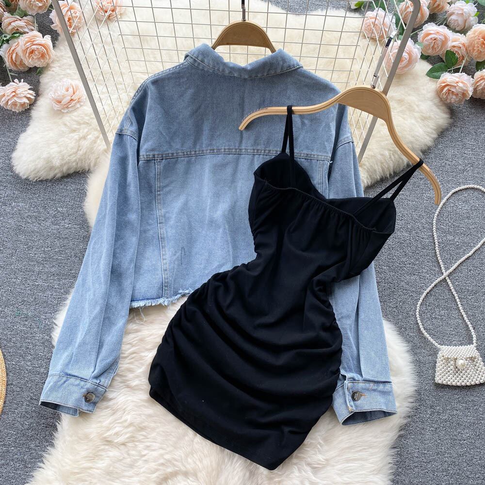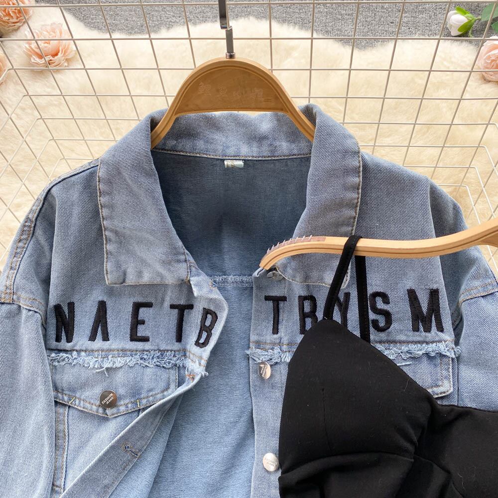 2022年春の新香港スタイルレトロニッチデザインレターデニムジャケット+ヒップサスペンダースカートスーツタイド スプリング 春物 lyxaj20667853597
