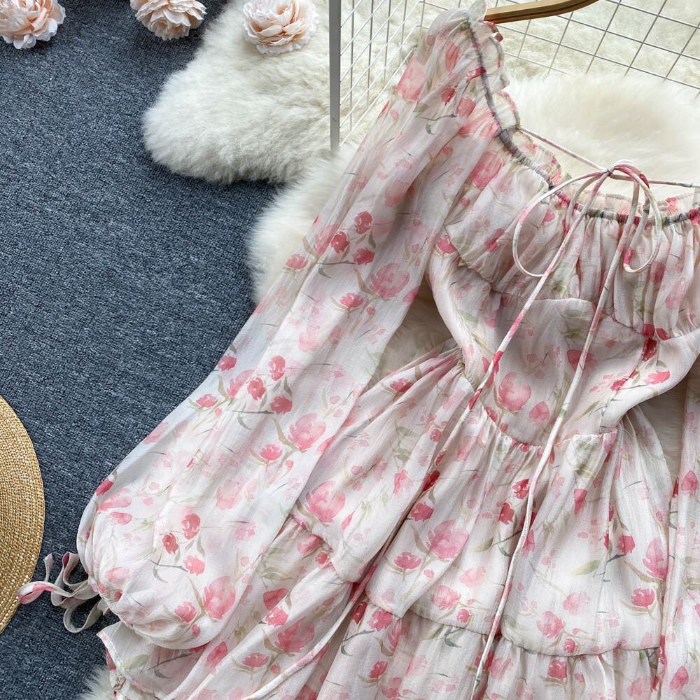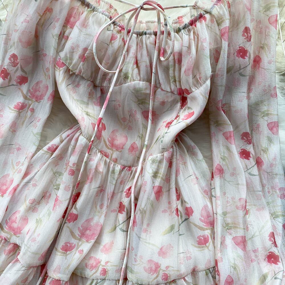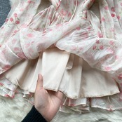 Fairy dress female spring new first love feeling broken flower tea break puff sleeves gentle waist princess skirt スプリング 春物 スカート フラワーデザイン lyxaj14876694330