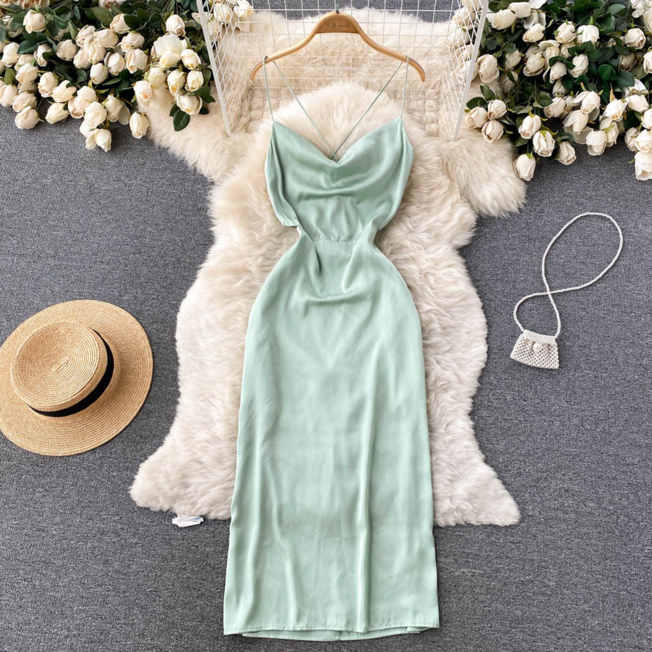 Silky satin suspender dress female 2022 spring and summer new temperament sexy slim bottoming bag hip pure desire long skirt ロング スプリング 春物 サマー 夏物 スカート シルキー サテン スリム ピュア lyxaj91204204215