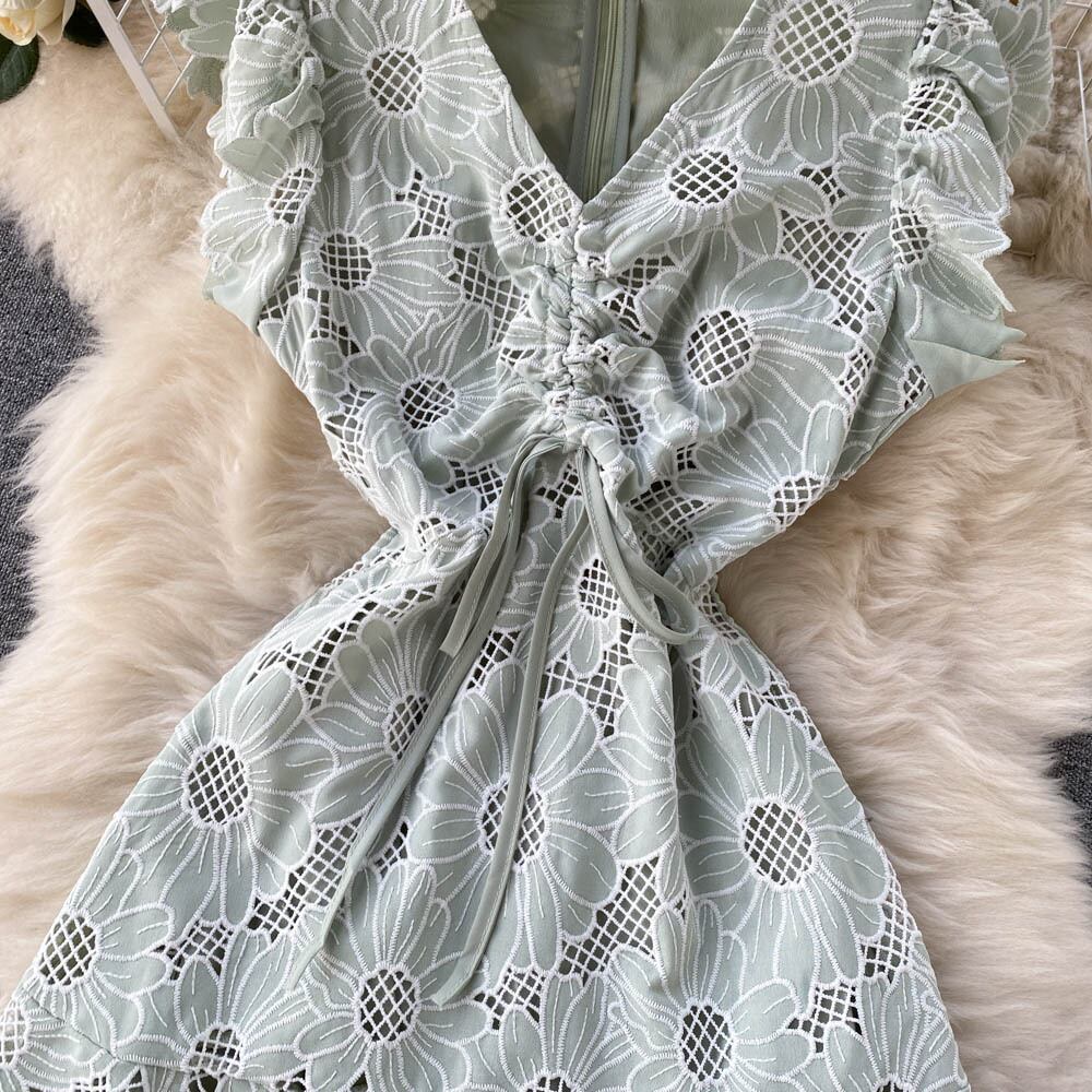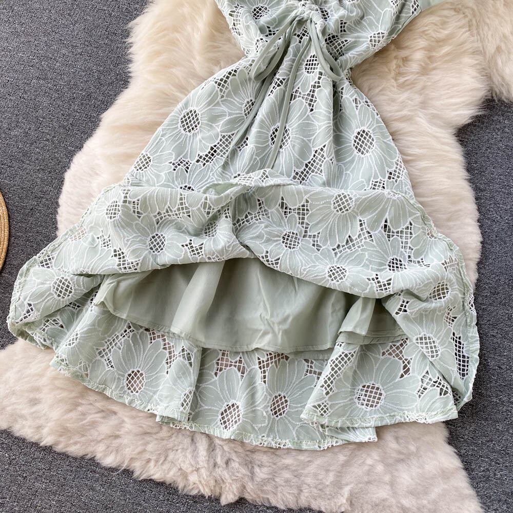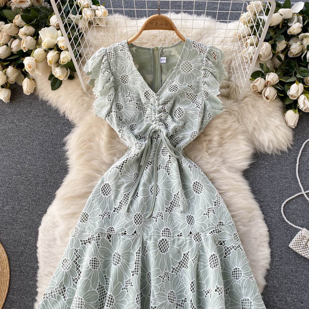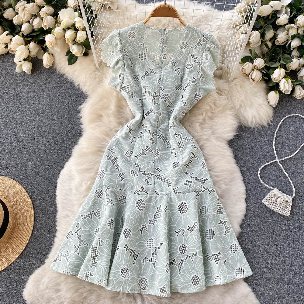 2022年夏の新作デザインウエスタンスタイルレトロ半袖フローラルドレスレディースフレンチウエストスレンダーベルフラワースカート サマー 夏物 花柄 フラワーデザイン lyxaj39665871427