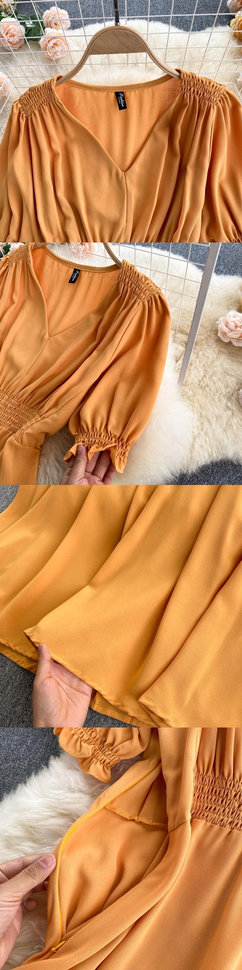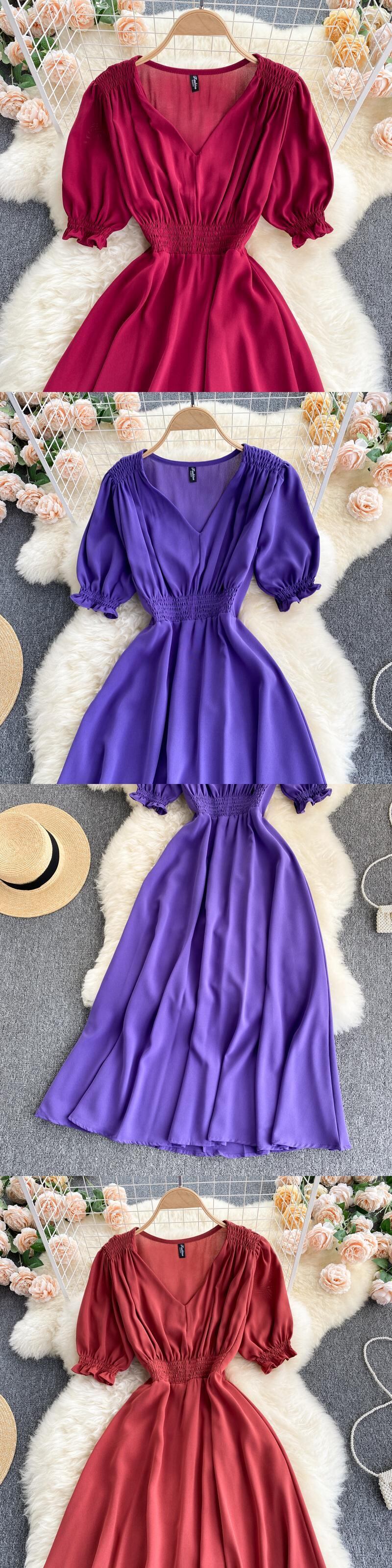 フレンチドレス2021年新作サマードレス女神ファン気質Vネックスケミングプリーツ自家栽培ミドル丈ベルフラワースカート 夏物 フラワーデザイン lyxaj12431486552