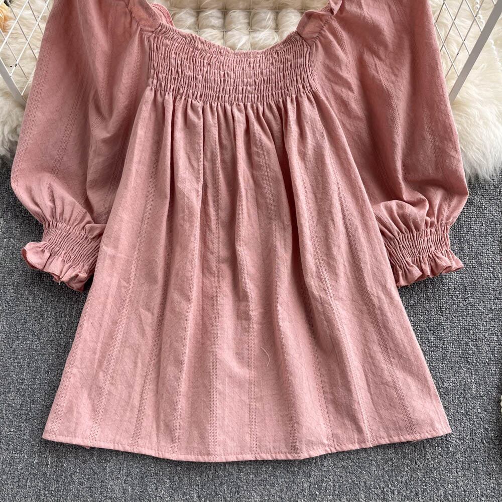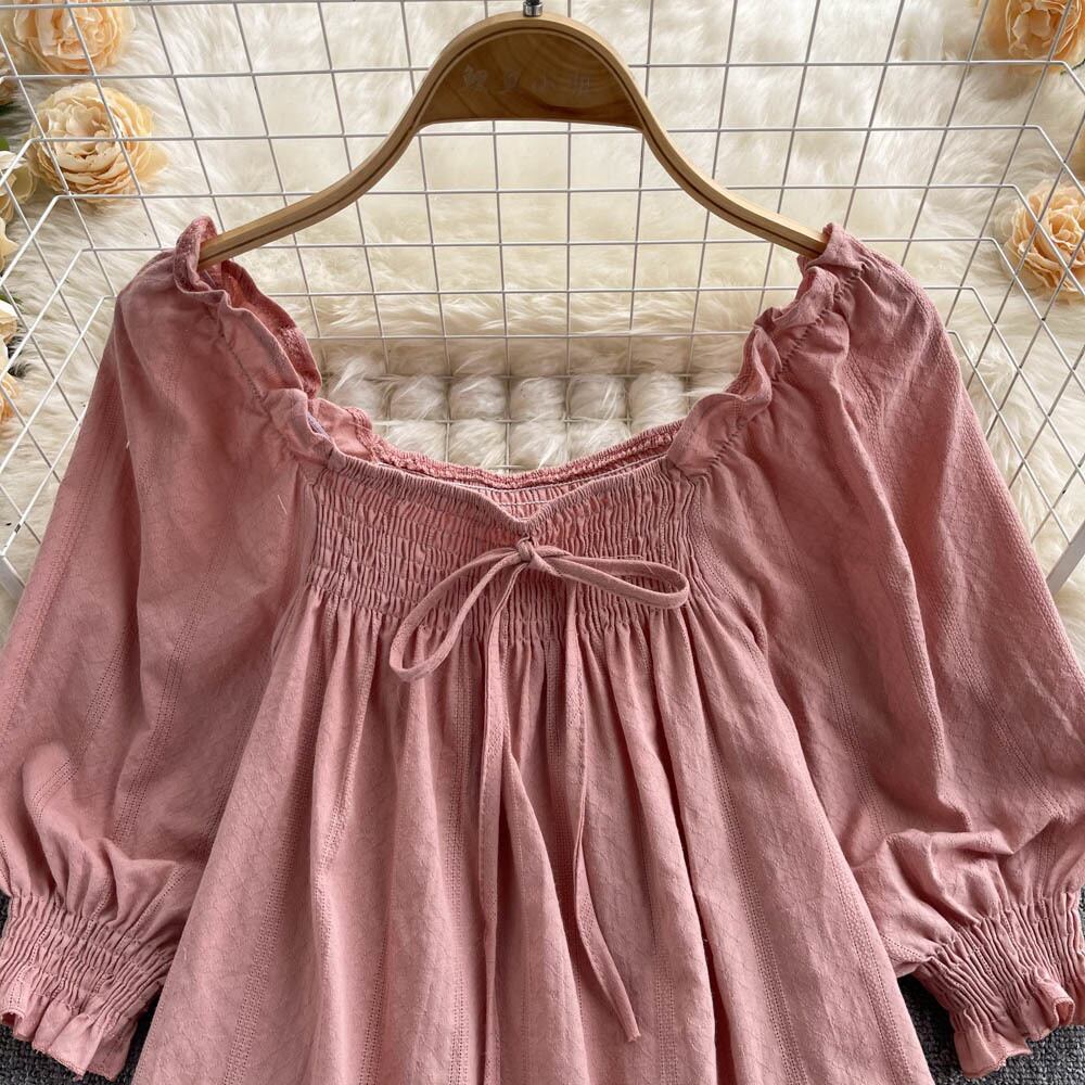 パフスリーブルーズスクエアカラー無地菌エッジパフィーシャツレディースオールマッチガーリースタイル薄手のシャツデザインセンストップ ソリッドカラー スクウェア lyxaj32405232954