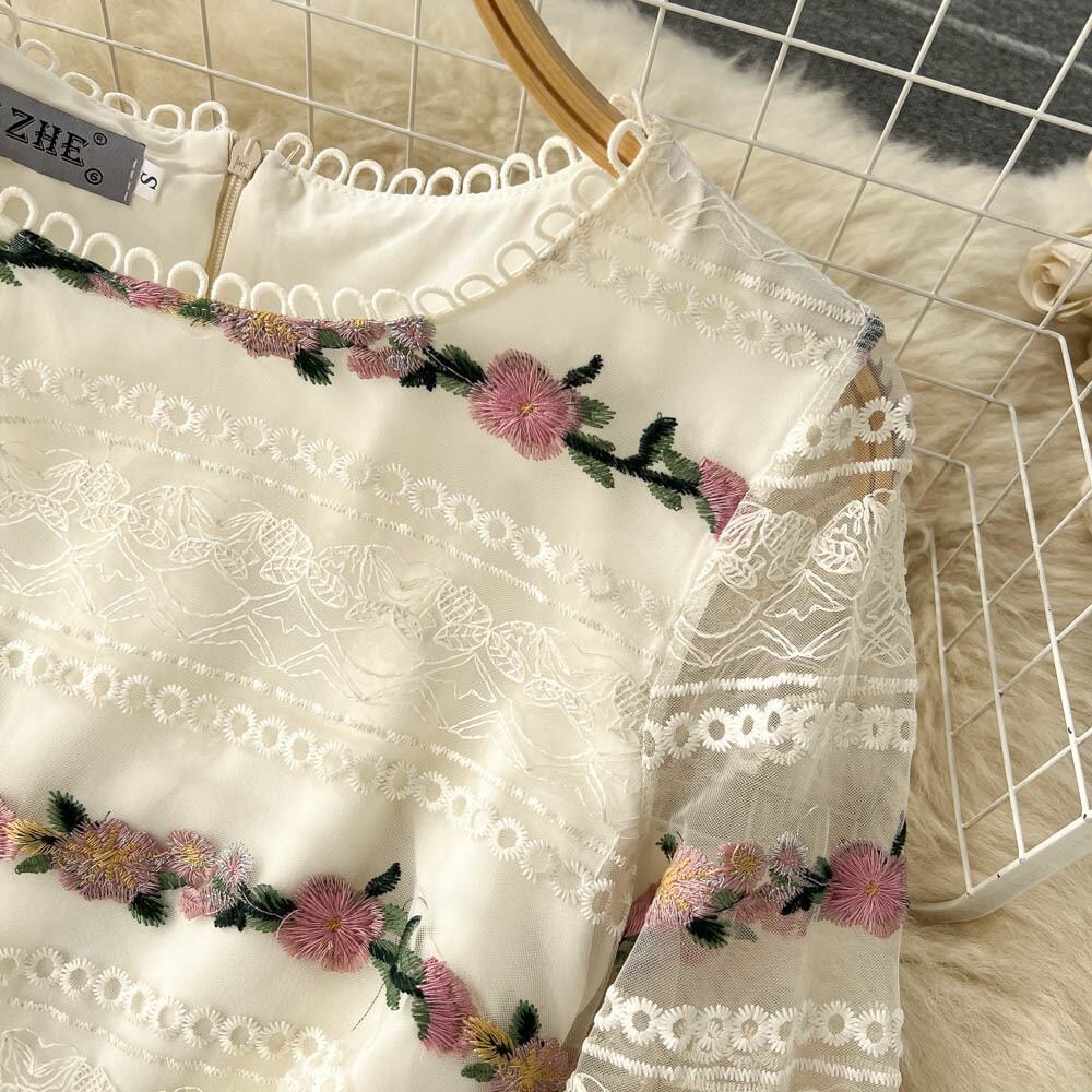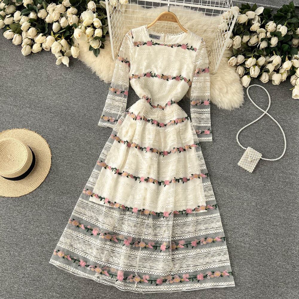 2022年春新作センスニッチストライプコントラストカラー重工業刺繡七分袖ファッションスリムドレストレンド 刺繍 スプリング 春物 lyxaj3402142618