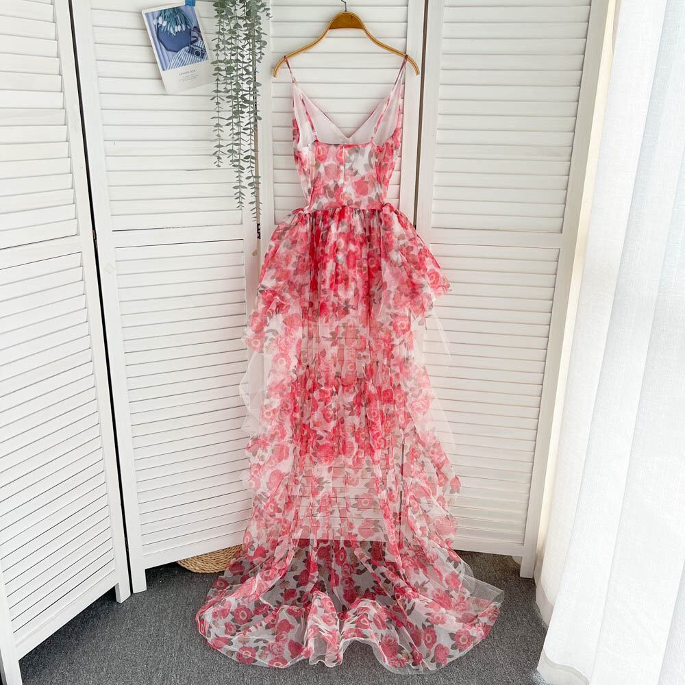 優しい風の背中の開いた花柄サスペンダードレスセクシーなVネックウエストレトロプリント海辺のホリデービーチスカート lyxaj21276384598