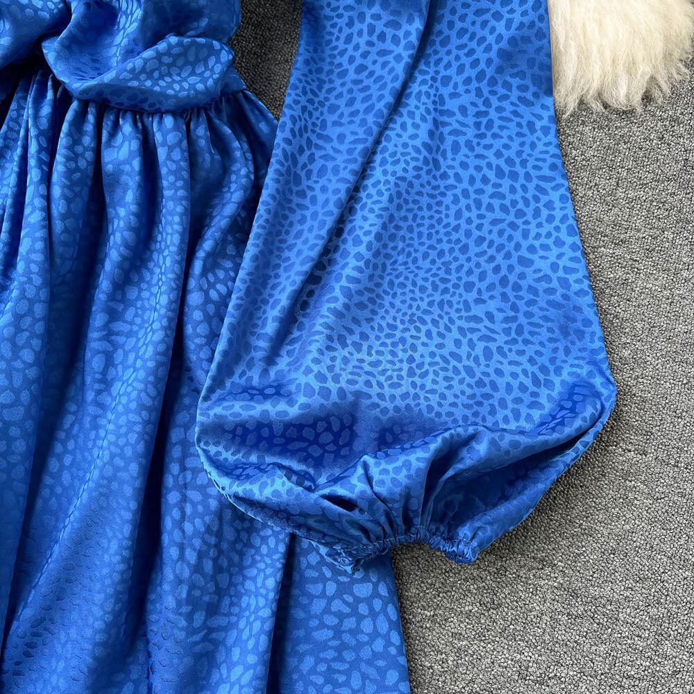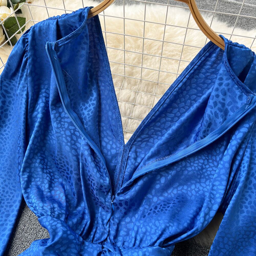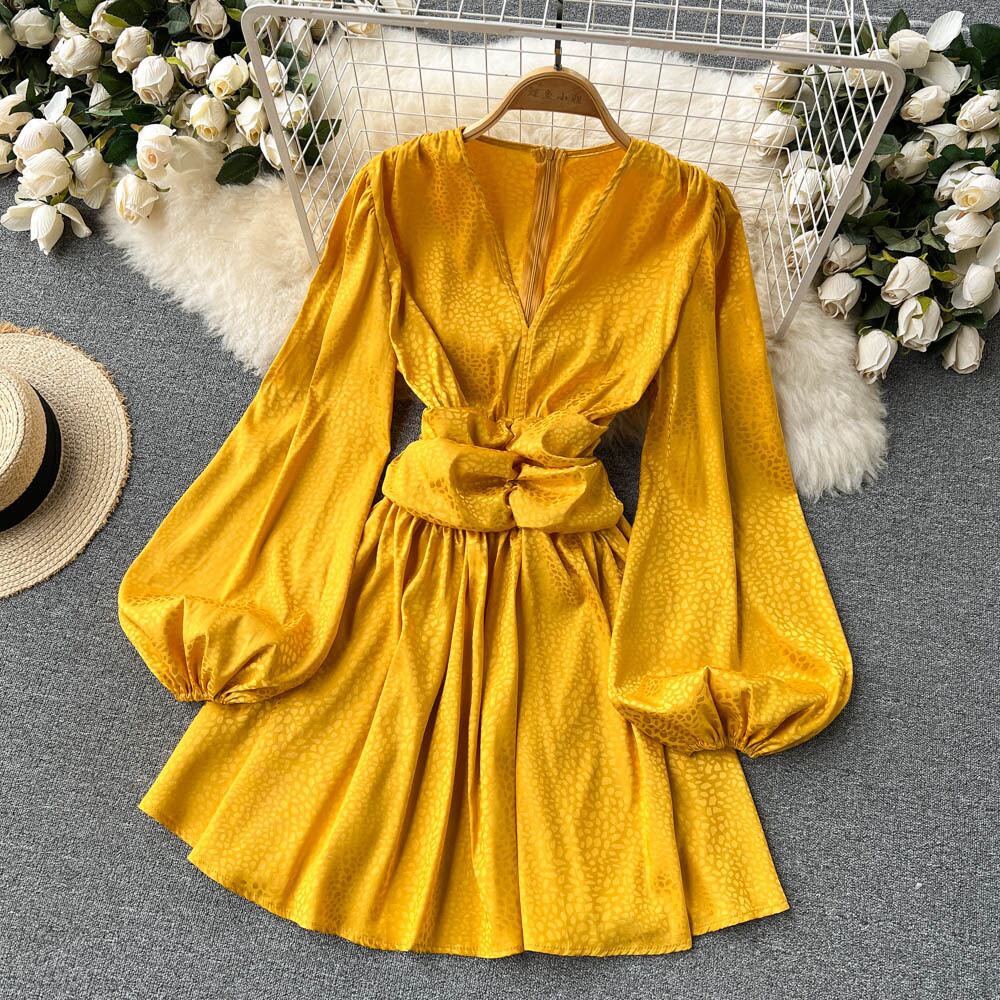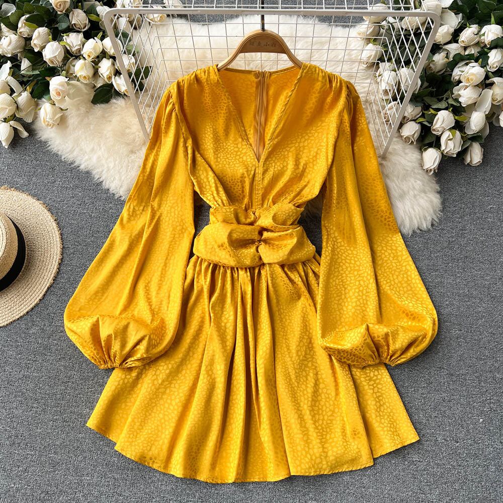 夏の新しいVネックウエストプリーツパフスリーブドレス女性ヘップバーンスタイル気質女性フリルスカートトレンディ サマー 夏物 lyxaj31072456722