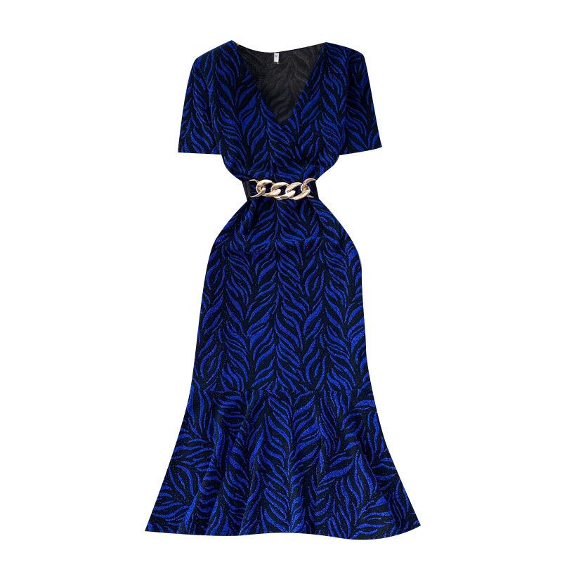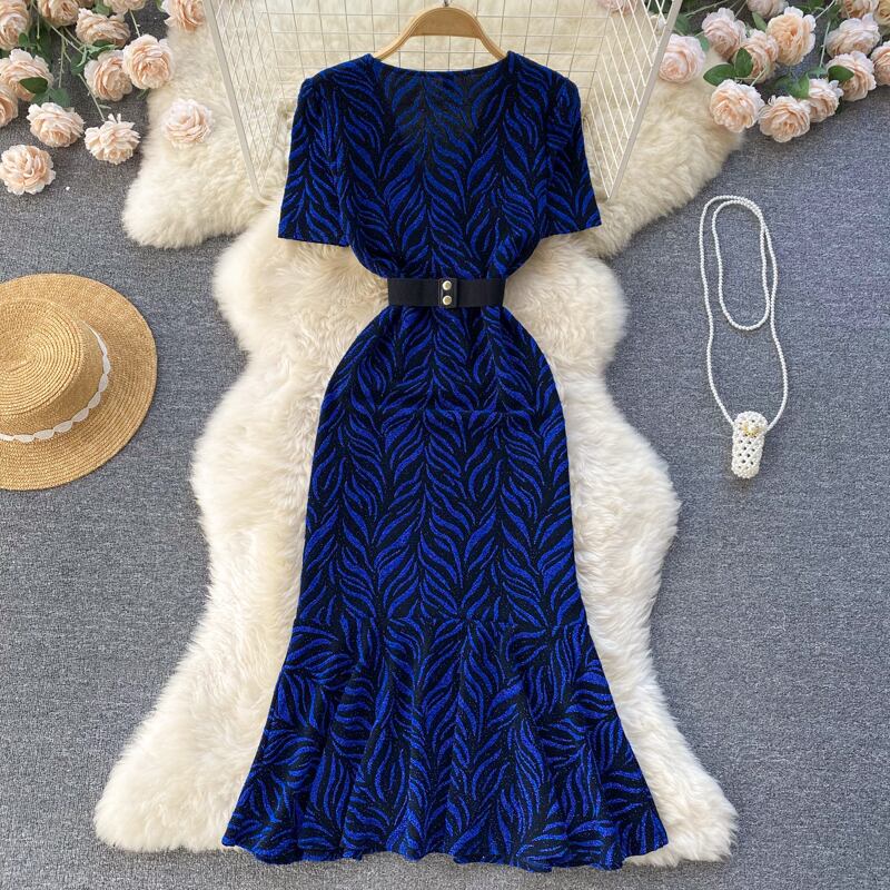 ヨーロッパとアメリカのフランスのVネックフィッシュテールドレス女性のニッチライトラグジュアリー明るいシルク長袖ウエストスリムスリムロングスカート ヨーロピアン lyxaj52431291095