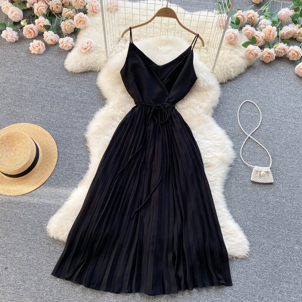 香港スタイルのシックでセクシーなチューブトップVネックサスペンダードレスレディースミドル丈ニューウエスト丈プリーツロングスカート lyxaj68700501428