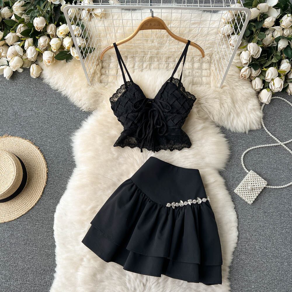レースアップドローストリングショーツは薄くて用途が広く、セクシーでピュア、ホットな女の子、レースサスペンダー、デザインセンス、ショートスカート、ツーピースセット ブルマー lyxaj54341821464