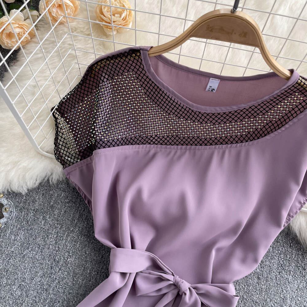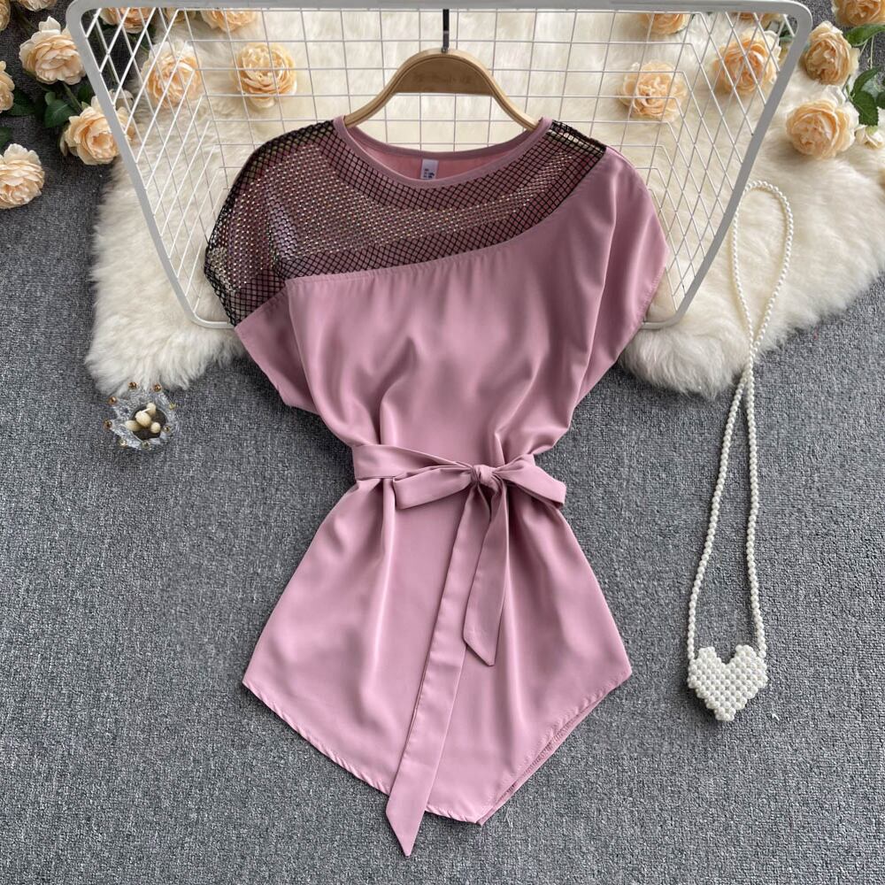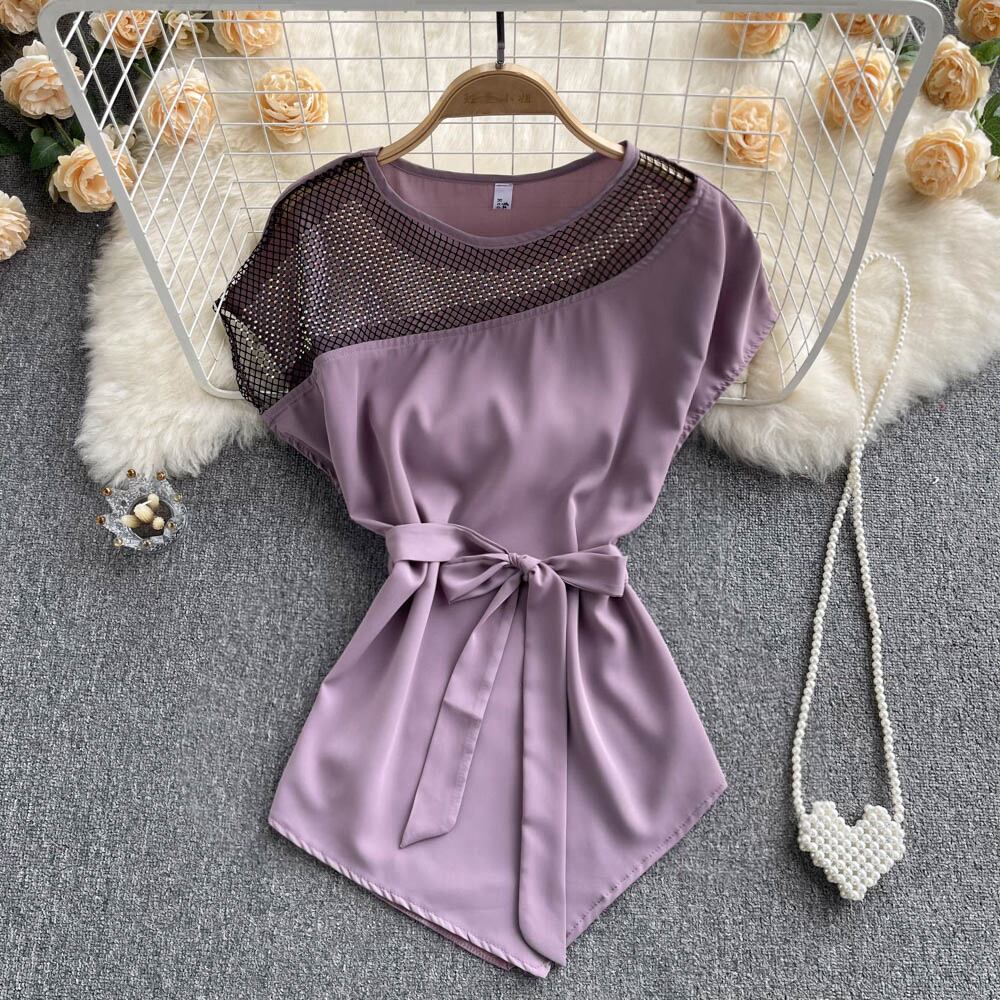シックな風の妖精の甘いウエストの薄いTシャツ女性の夏のハイエンド気質中空デザイン不規則なトップ 大人ガーリー スウィート キュート カジュアル サマー 夏物 lyxaj9270324388