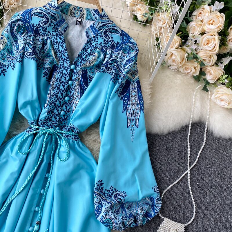重工業フレンチレトロパレススタイルドレスVネックディスクボタンパフスリーブネクタイウエスト薄いホリデーフェアリースカート レース lyxaj15216070313